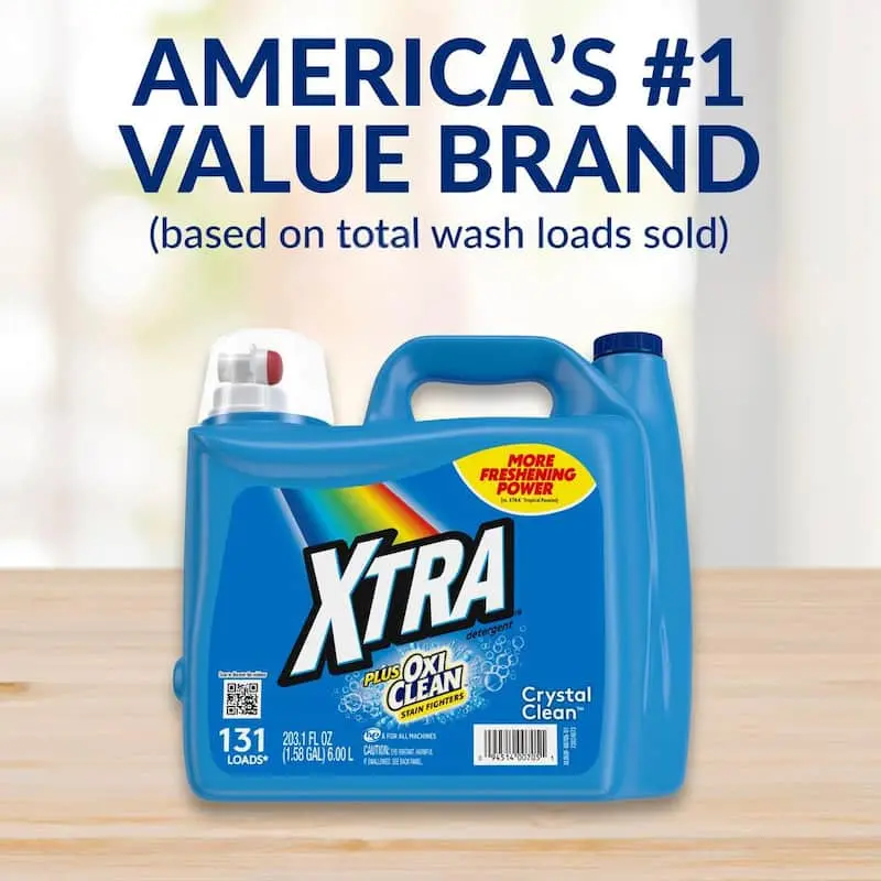 5. Xtra (2-Pack) Crystal Clean Plus Oxiclean Dual HE Liquid Laundry Detergent, 131-Loads, 203.1 fl. oz.,Stain Fighter, Power of OxiClean in a Value Detergent, Great for Standard and HE Machines, Crystal Clean Scent, Reliable Performance.