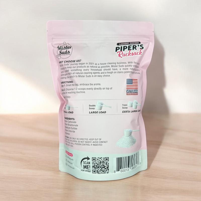 Mister Suds, a proud veteran-owned business based in Wisconsin, offers a premium line of laundry detergents designed to deliver outstanding cleaning power while being gentle on your skin and the environment. Each and every bag of laundry detergent contains 4 baseline ingredients that are completely natural. We offer blends of scents along with 100% All-Natural Laundry Detergents.