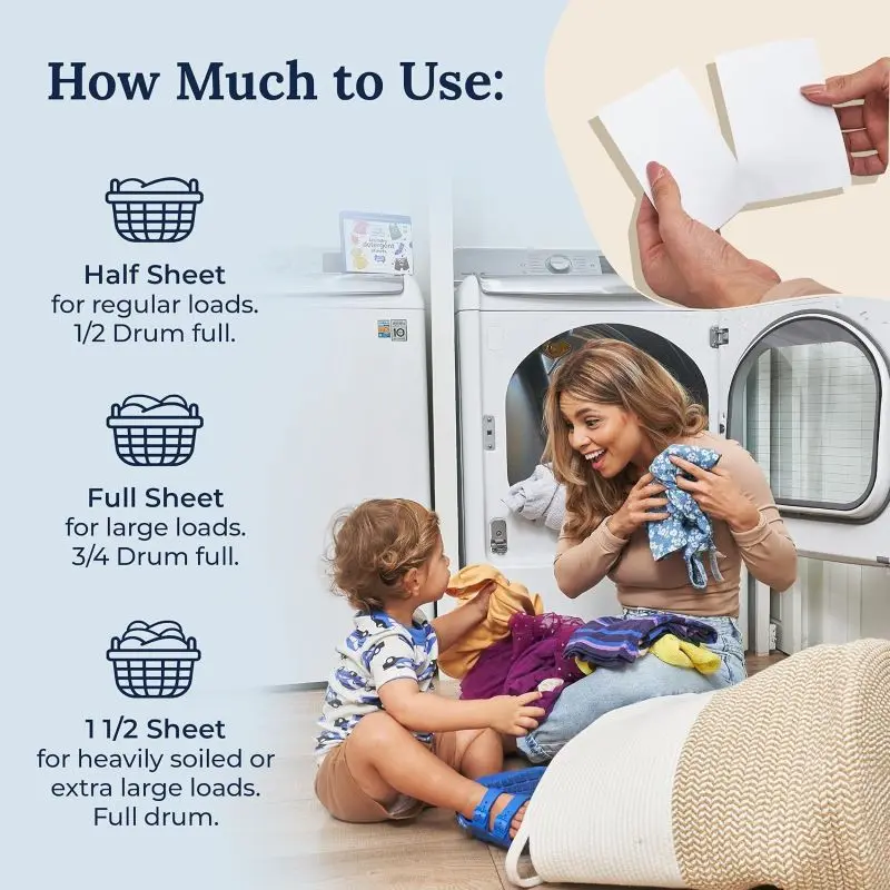·TRAVEL FRIENDLY - Compact and lightweight, these laundry detergent sheets are perfect for on-the-go use, while reducing plastic waste—making them a clean, sustainable option for your laundry routine