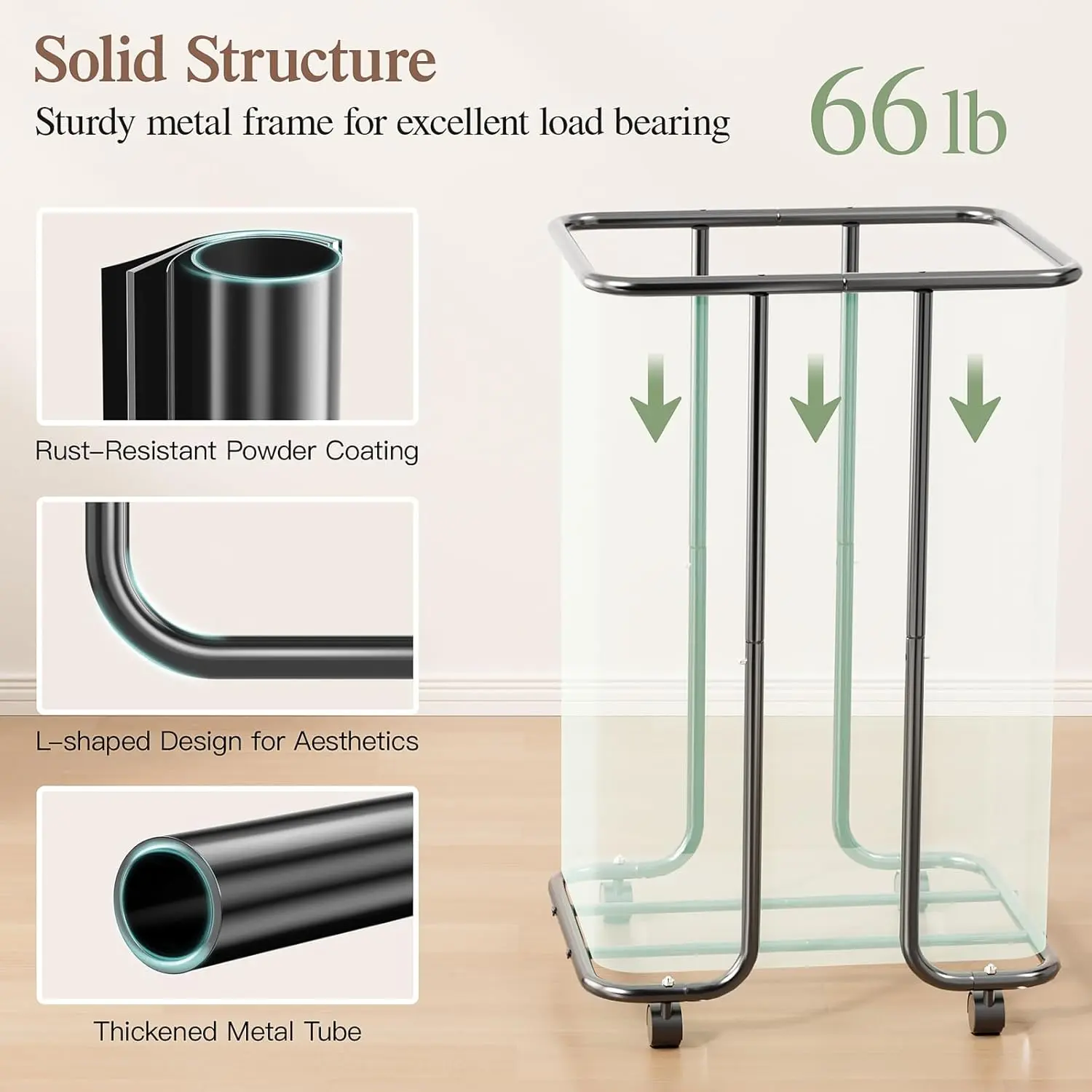 ·Sturdy Elegance, Load Master: This dirty clothes hamper features an elegant L-shaped metal frame, supporting up to 66 pounds. clothes hampers for laundry offers long-lasting durability while adding a touch of modern style to your home decor