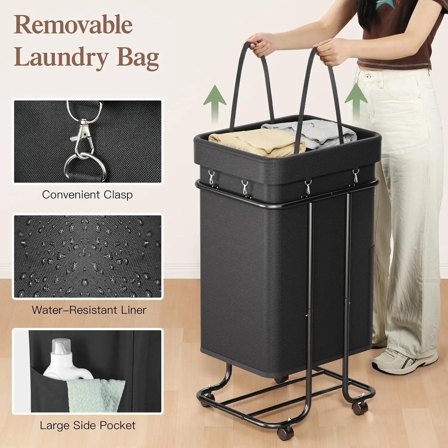 ·Long-Lasting Material: laundry basket on wheels is made of 600D oxford fabric with a PVC coating, robust and detachable. Included clasps ensure it’s securely attached to the frame, making loading and cleaning simple, easing your chores