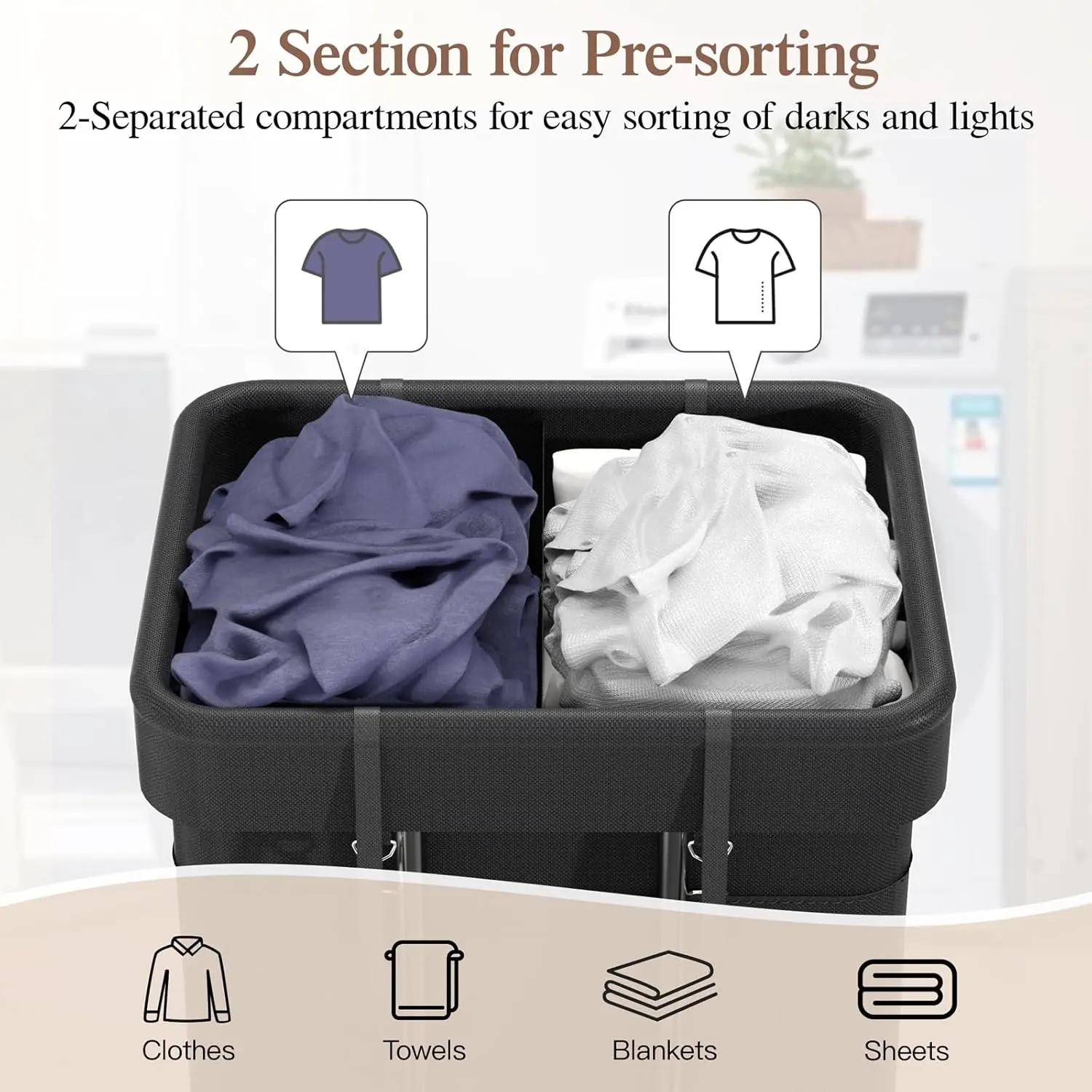 ·Smart Sorting, No Color Worries: With laundry hamper 2 section design, easily separate darks and lights to prevent color mixing. Thoughtfully designed, this double laundry hamper keeps your laundry tasks organized and efficient