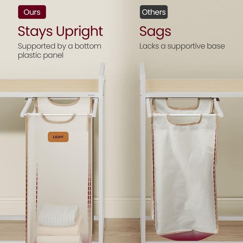 Tired of chaotic laundry days? The VASAGLE laundry sorter transforms chaos into order, making laundry day a breeze. Its slim design and practical features fit perfectly in any home.