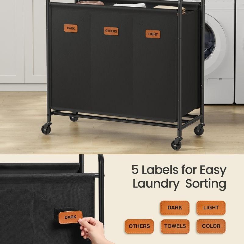 ·Sort & Store: compartments and 5 labels for easy laundry sorting.