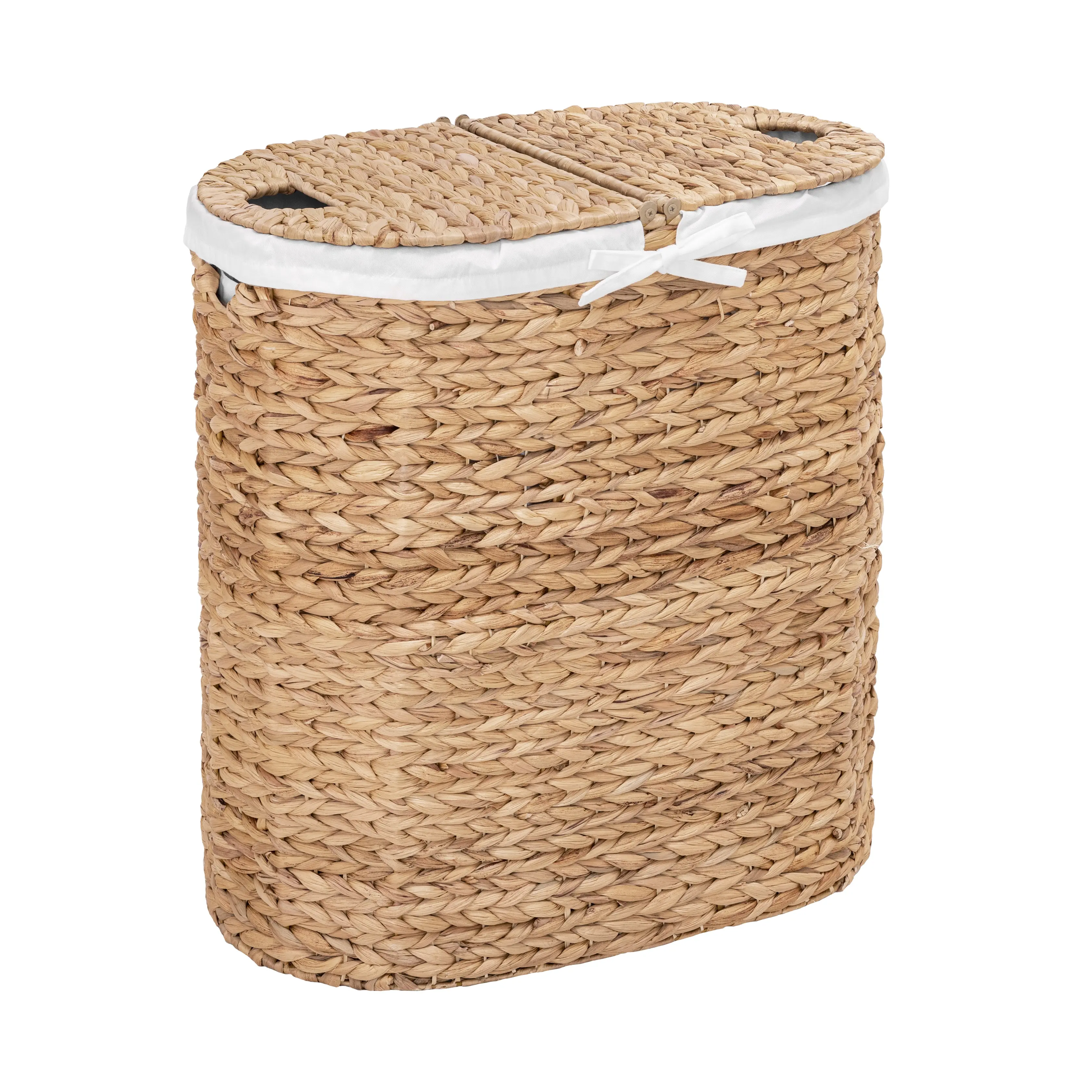 Natural Water Hyacinth Handwoven Lidded Oval Double Laundry Hamper