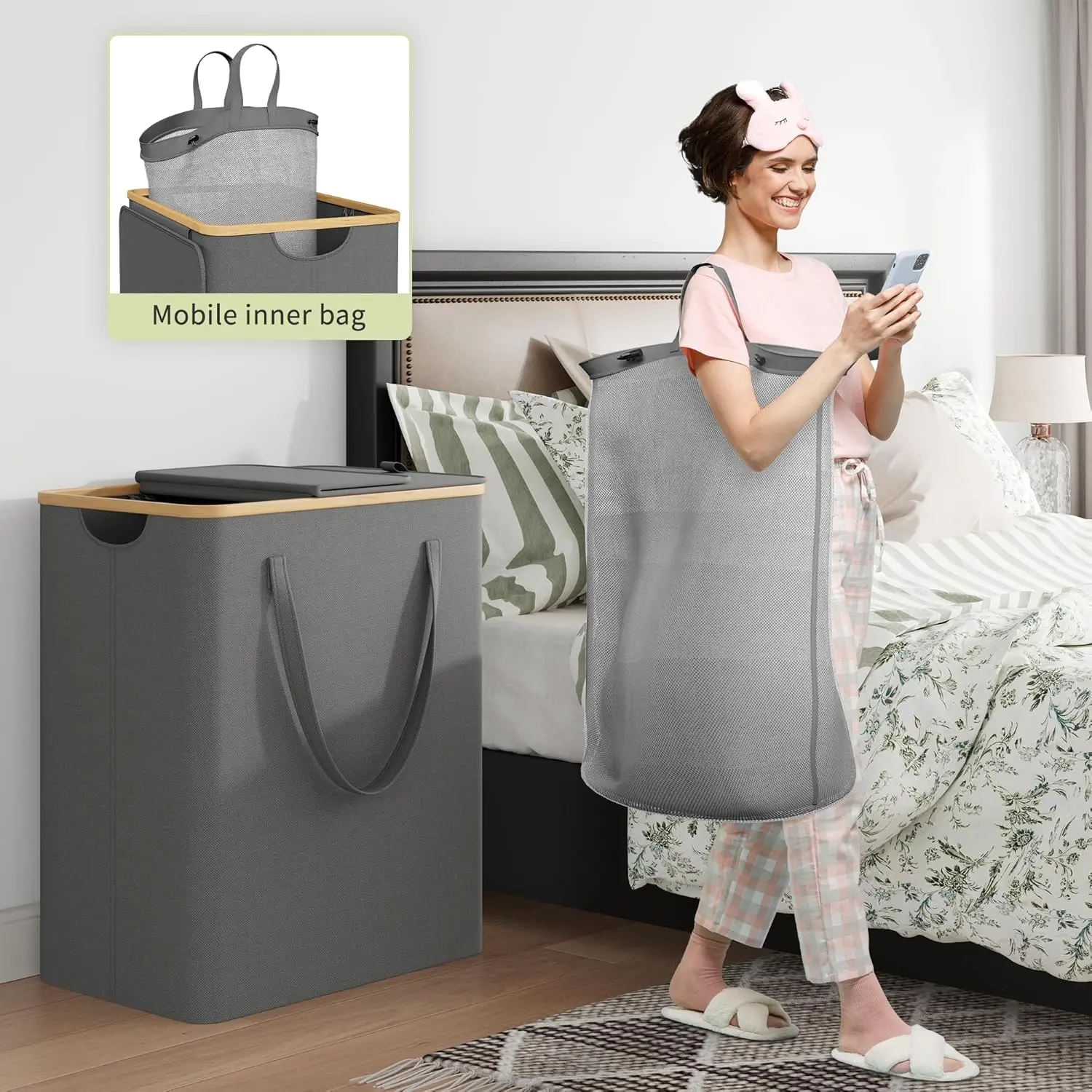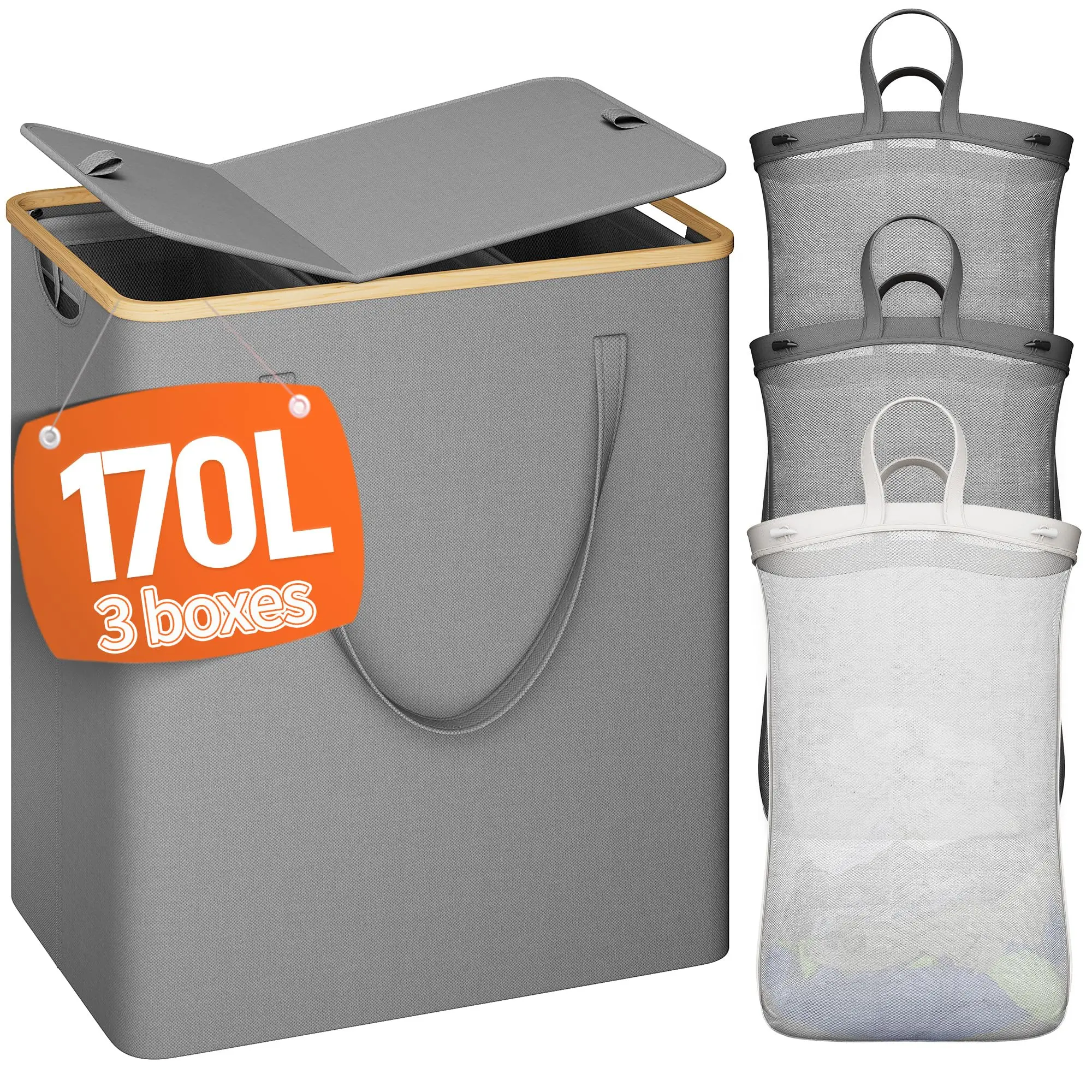 ·Small pocket on the side & 5 Minutes Easy Assembly: You can store small items such as socks and underwear, so that the storage is clearer and more convenient. Foldable and easy to assemble. The laundry hamper 3 section has clear instructions, attaching the removable bag to the basket is a breeze and can be completed in 10 minutes, making it the most effective assistant in your housework.