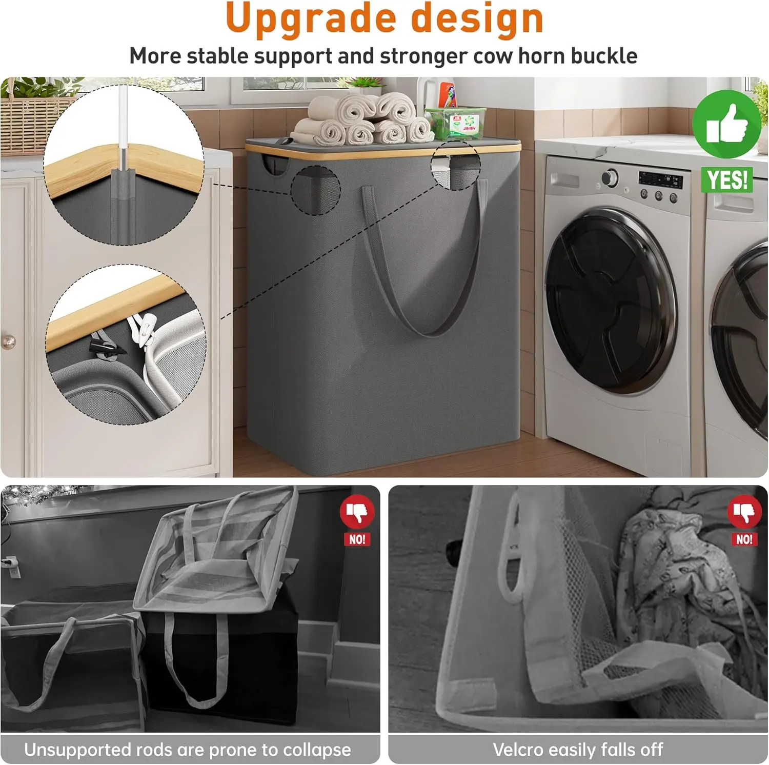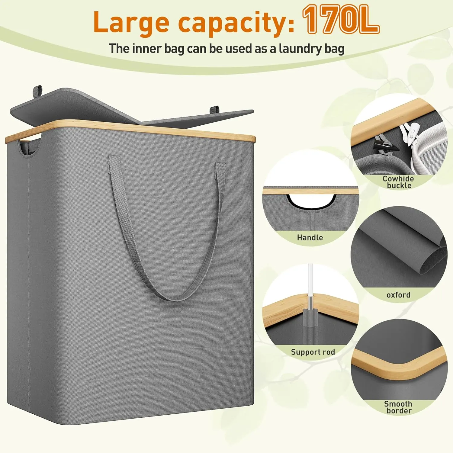 ·Sturdy Hamper with Lid: 600D reinforced oxford cloth, 8mm fiber rod, the top side door is designed to not tip over easily. The full use of upgraded materials makes our clothes hampers for laundry sturdy and stable during use, not easy to pour, and more secure and comfortable to use. Our hamper comes with a lid, keeping unpleasant odors hidden until regular laundry days.