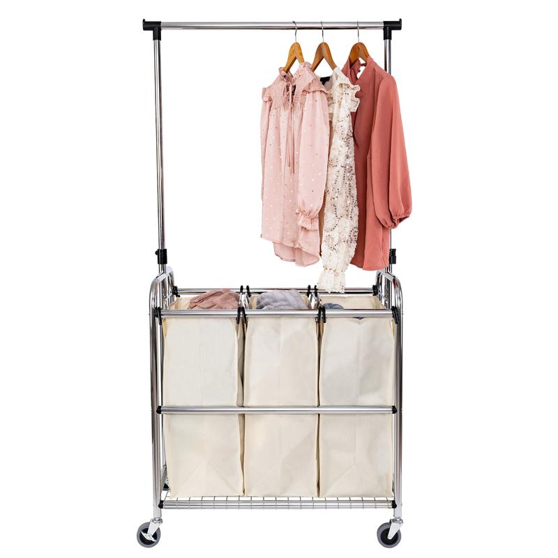 I love my new laundry sorter with the rack to hang my clean clothes. I often dry my clothing just enough to get the major wrinkles out then let hang to dry. This is perfect for that. Should have bought this years ago! Highly recommend.