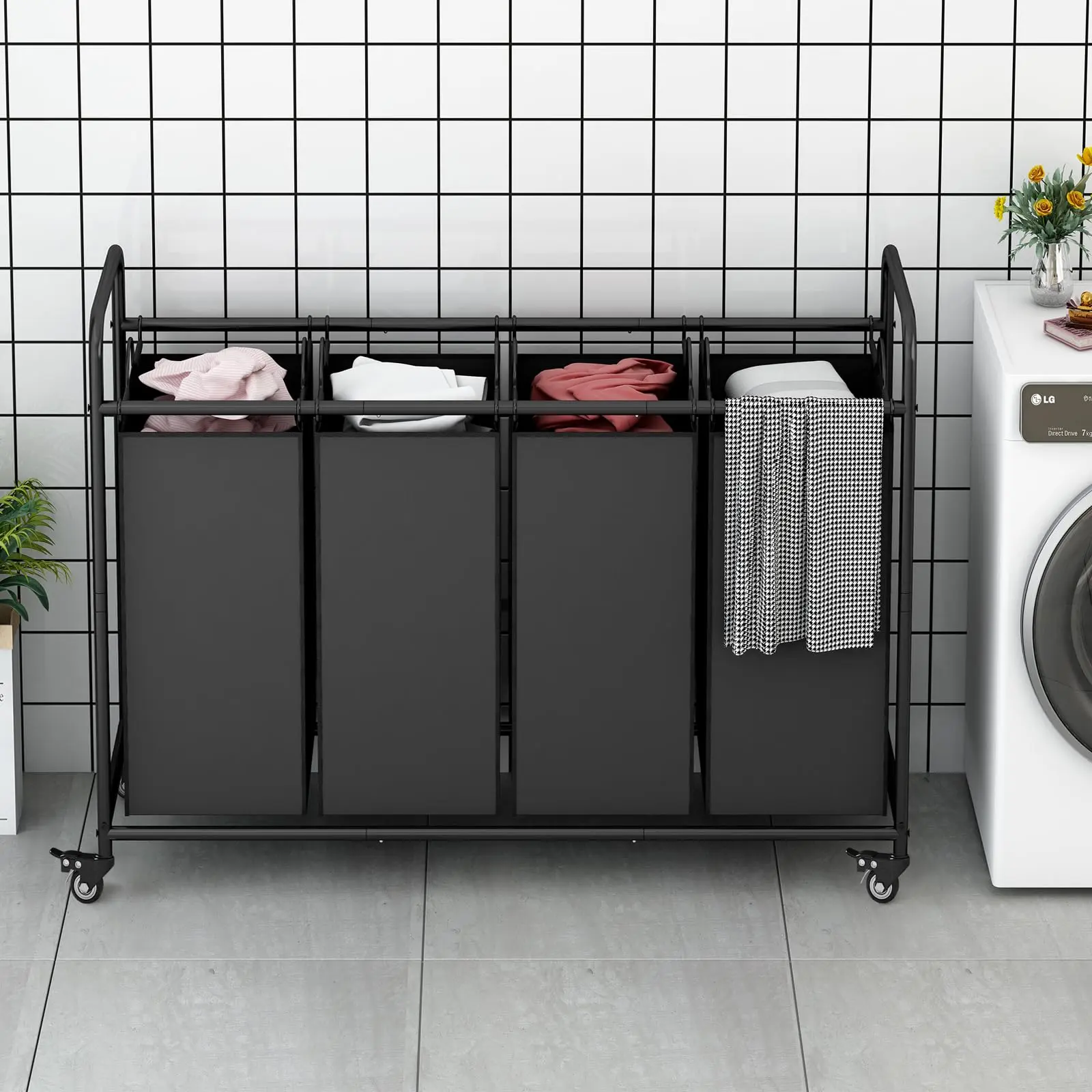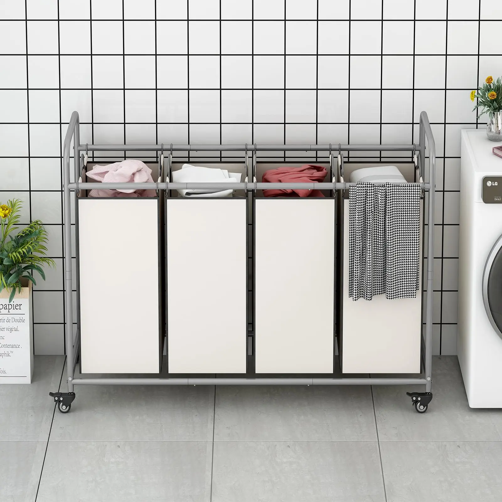 🛒 4 Bag Laundry Basket, Sorting Machine Laundry Basket Cart
