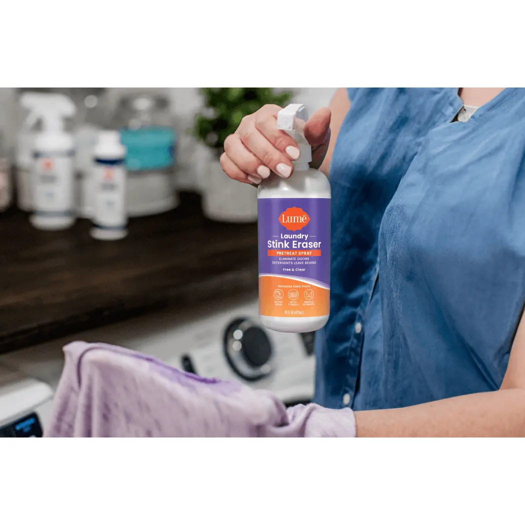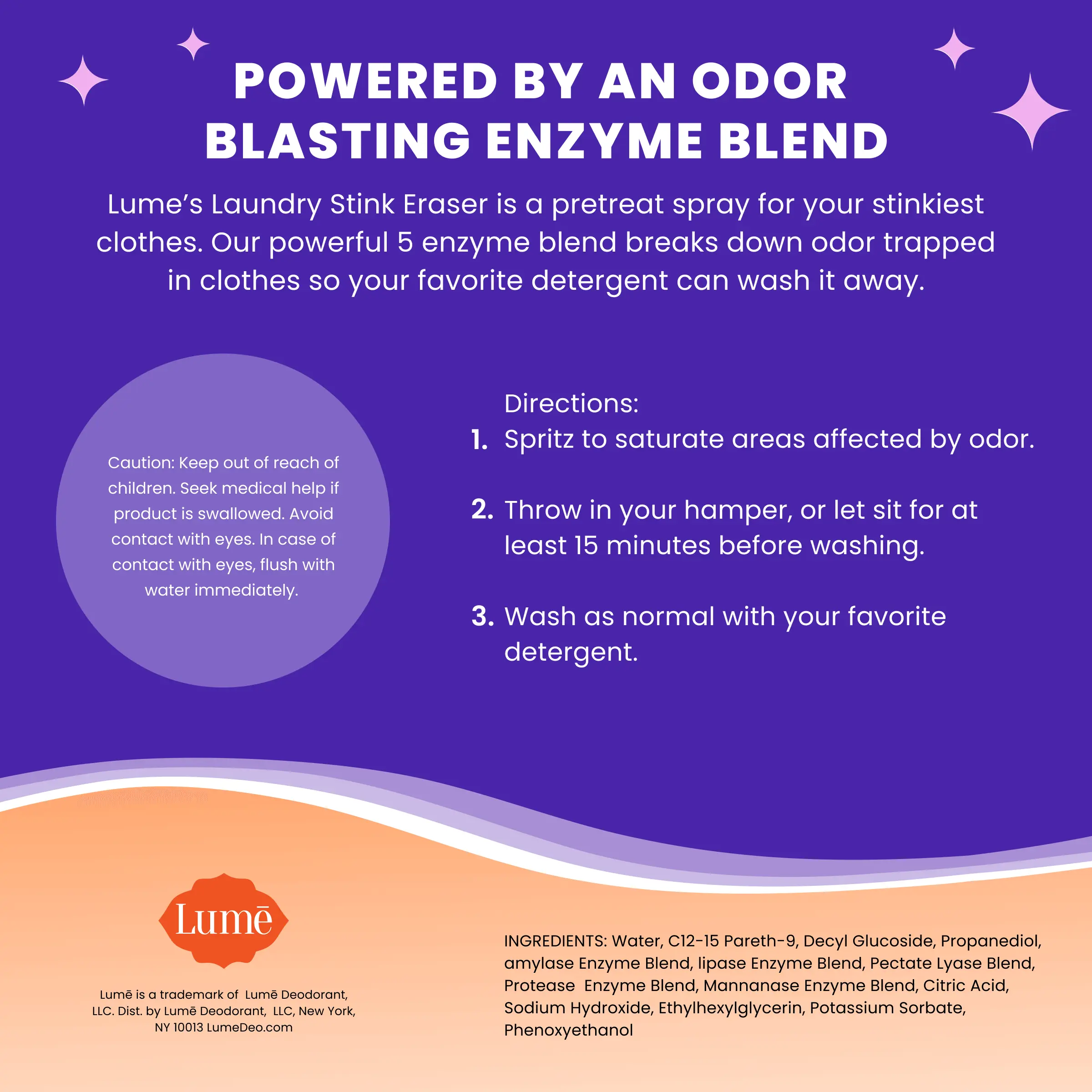 This powerful laundry pretreat uses a super concentrated enzyme blend to break down the stubborn odor residue detergents leave behind—so clothes come out truly clean, not just freshly scented.