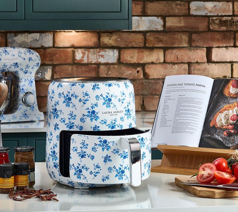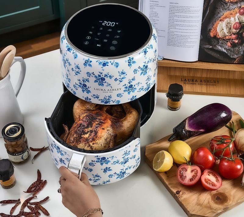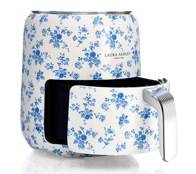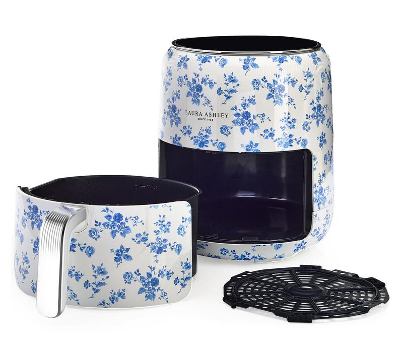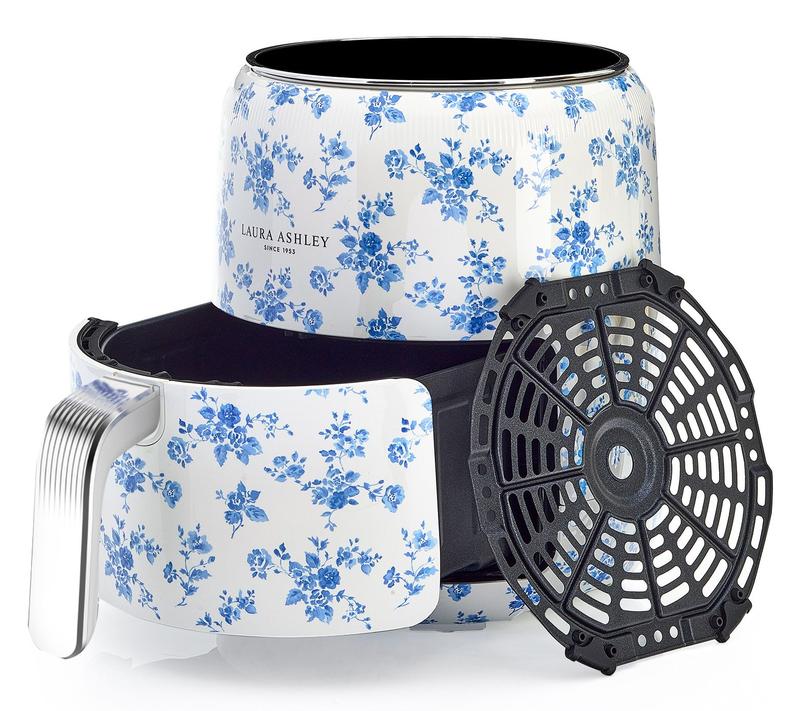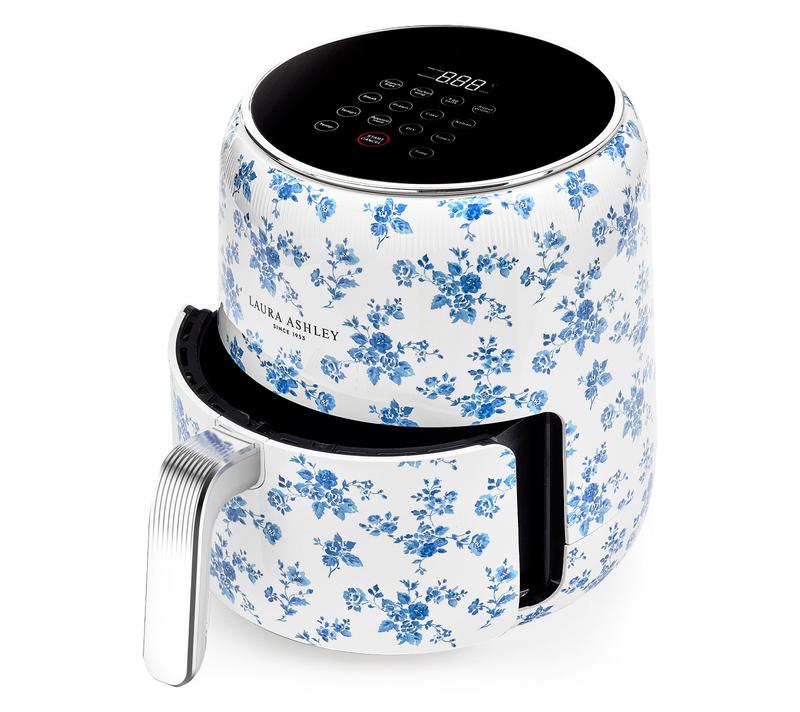Digital Air Fryer with Rapid Air Circulation. 1500 Watts. 60-minute timer. Temperature adjustment of 80 Celscius- 200 Celscius Non-stick food basket Laura Ashley China Rose Hand-Applied print Imported.