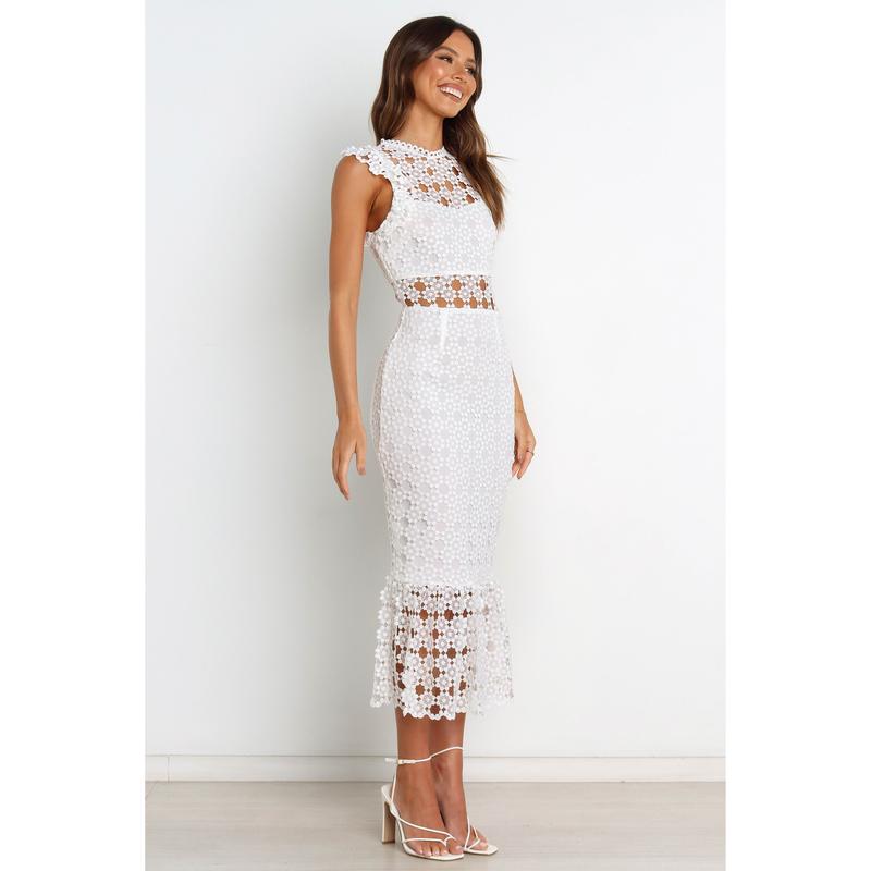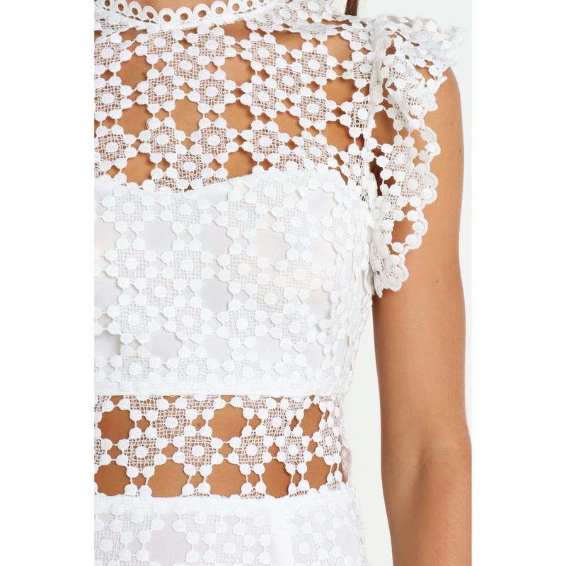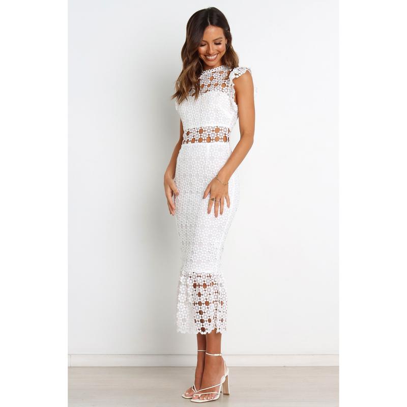 Calling all party-goers! Perfect for special occasions and events, this midi length dress is sure to turn heads. Its timeless design featuring a lace overlay and high round neckline will make you stand out from the crowd.