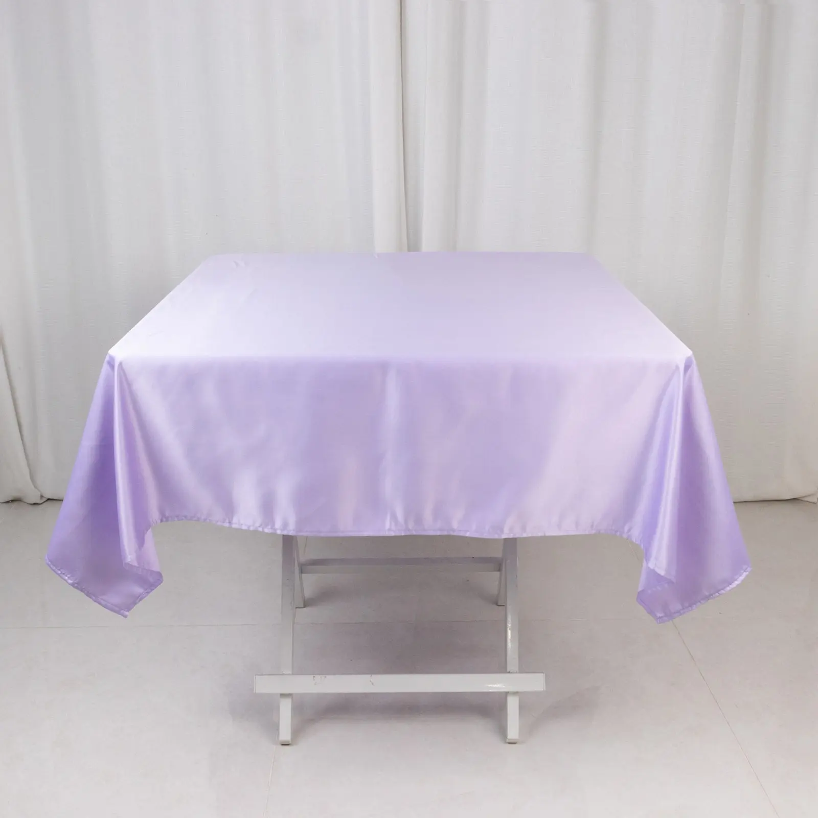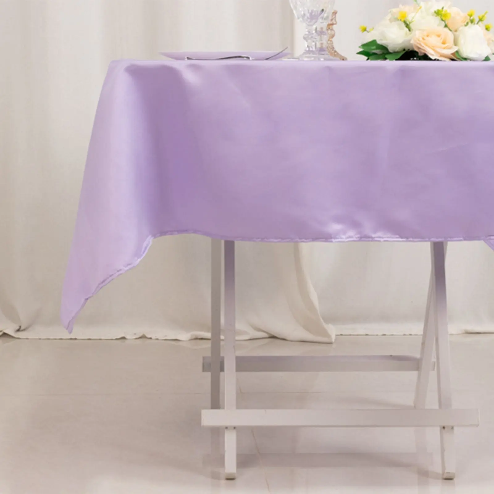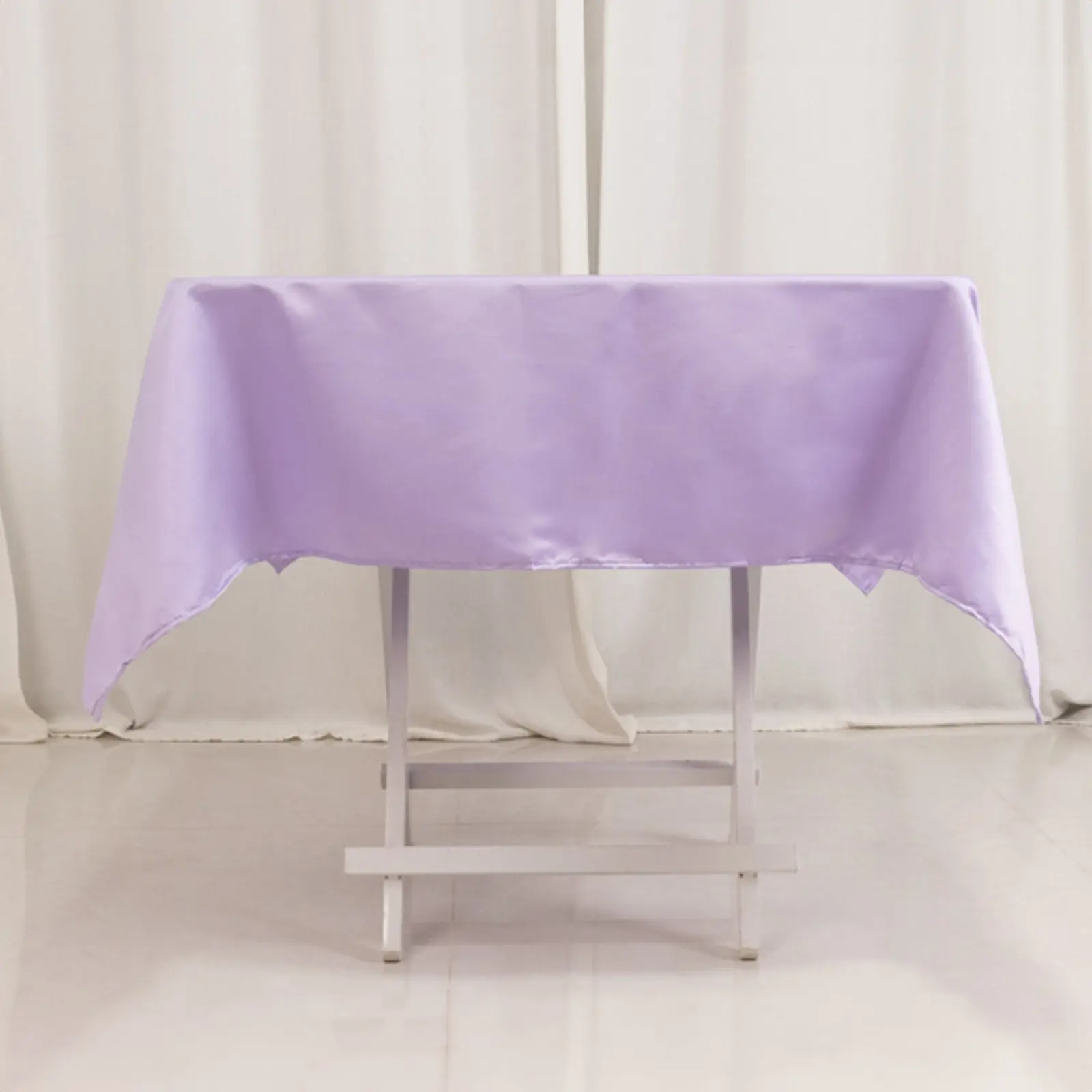 5. Lamour Satin 54"x54" Square Tablecloth Lavender Lilac - Durable & Silk-Like Table Cover