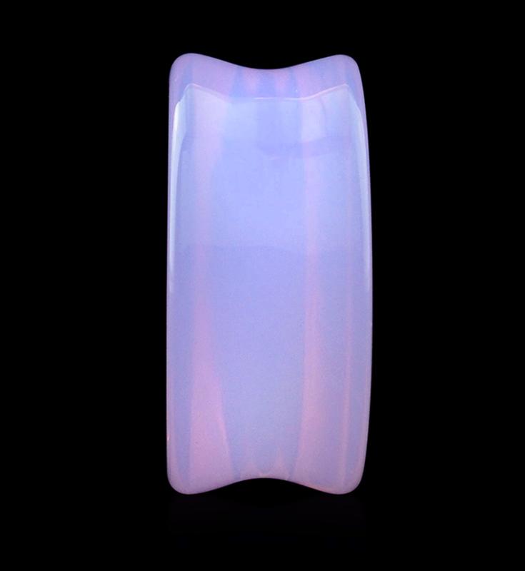 Each pair (2 pieces) is made from beautiful lavender/pink opalite glass and features concave sides. Move around in the light and watch the color change from purple to pink to blue. With sizes ranging from 2G (6mm) to 1" (25mm), these double flared plugs are perfect for healed lobes. The wearable area is 11mm. Please note: these plugs are not recommended for stretching.
