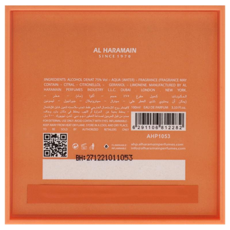 Launched by the design house of Al Haramain. A floral fruity fragrance for modern women Inspired by the most beautiful of Natures best creations Crisp sweet feminine sensual and appealing Top notes of rose citrus and berry.