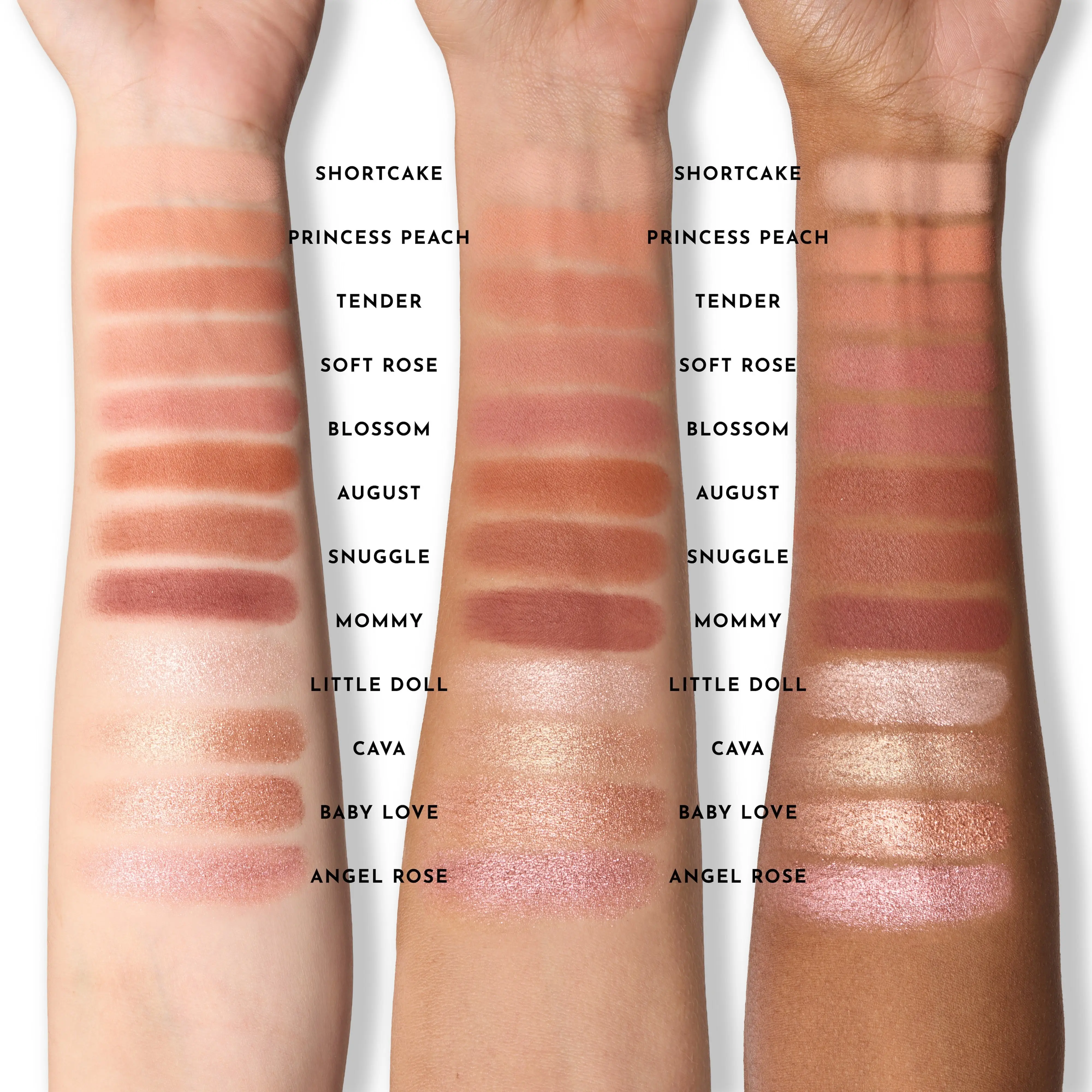| Ingredients | ZEA MAYS (CORN) STARCH [ZEA MAYS STARCH],ZINC STEARATE,MICA,CAPRYLIC/CAPRIC TRIGLYCERIDE,DIISOSTEARYL MALATE,GLYCERYL CAPRYLATE,P-ANISIC ACID,ROSA HYBRID FLOWER EXTRACT,TITANIUM DIOXIDE (CI 77891),IRON OXIDES (CI 77491),YELLOW 5 LAKE (CI 19140). PRINCESS PEACH: SYNTHETIC FLUORPHLOGOPITE,IRON OXIDES (CI 77491,CI 77492),MANGANESE VIOLET(CI 77742),ULTRAMARINES (CI 77007),YELLOW 5 LAKE (CI 19140). TENDER: SYNTHETIC FLUORPHLOGOPITE,CI 77492,CI 77499),MANGANESE VIOLET (CI 77742),YELLOW 5 LAKE (CI 19140). SOFT ROSE: SYNTHETIC FLUORPHLOGOPITE,YELLOW 5 LAKE (CI 19140). BLOSSOM: SYNTHETIC FLUORPHLOGOPITE,MANGANESE VIOLET (CI 77742). AUGUST: SYNTHETIC FLUORPHLOGOPITE,YELLOW 5 LAKE (CI 19140). SNUGGLE: SYNTHETIC FLUORPHLOGOPITE,YELLOW 5 LAKE (CI 19140). MOMMY: SYNTHETIC FLUORPHLOGOPITE,MANGANESE VIOLET (CI 77742). LITTLE DOLL: MICA,SYNTHETIC FLUORPHLOGOPITE,SQUALANE,CALCIUM TITANIUM BOROSILICATE,HYDROGENATED POLYCYCLOPENTADIENE,SILICA,HYDROGENATED STYRENE/ISOPRENE COPOLYMER,ISODODECANE,CALCIUM SODIUM BOROSILICATE,CAPRYLYL GLYCOL,ETHYLHEXYLGLYCERIN,HYDROGENATED RAPESEED OIL,PENTAERYTHRITYL TETRA-DI-T-BUTYL HYDROXYHYDROCINNAMATE,TOCOPHEROL,TIN OXIDE,IRON OXIDES (CI 77491). CAVA: MICA,IRON OXIDES (CI 77491). BABY LOVE: MICA,IRON OXIDES (CI 77491). ANGEL ROSE: MICA,ALUMINUM POWDER (CI 77000). |