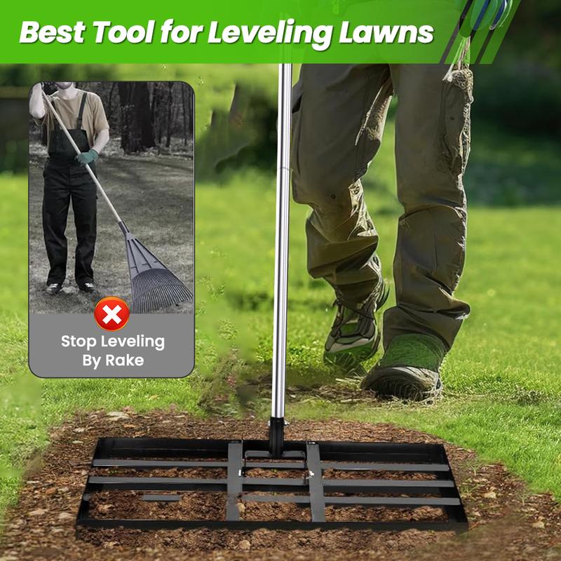 ·SAKER LAWN LEVELING RAKE DELIVERS EFFORTLESS LEVELING:Achieve a flawless lawn with the Saker Lawn Leveling Rake! Its 30"x10" iron head, coated in scratch-resistant black powder, glides smoothly over soil, sand, or gravel. Perfect for leveling grass, spreading fertilizer, or smoothing uneven patches in lawns, gardens, and sports fields.