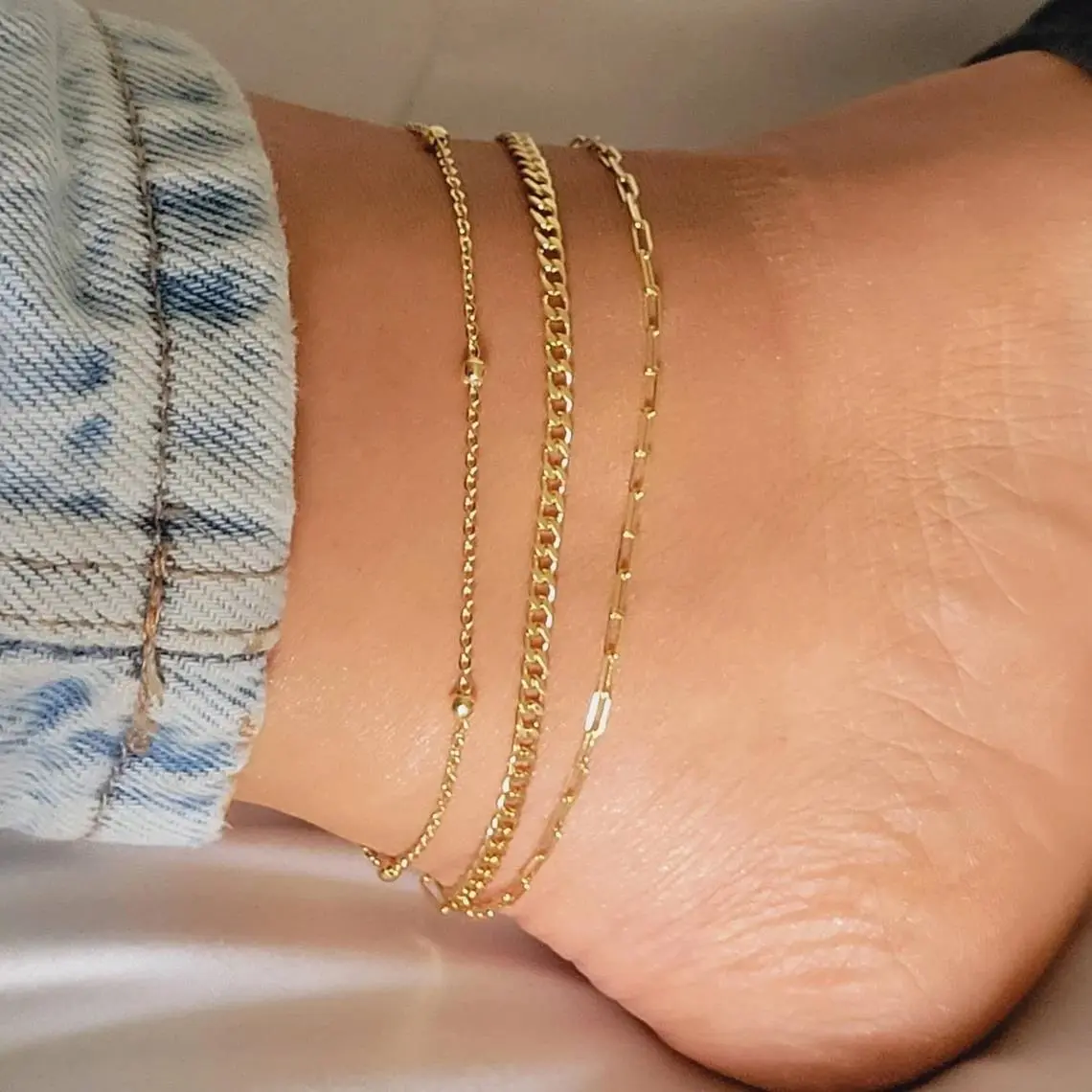 · MATERIAL: The ankle bracelet set is made of high-quality brass, 14k gold plated to ensure a long lasting finish, lead-free and nickel-free, no harm to skin and hypoallergenic. Which makes it stand out among all other plain anklets.