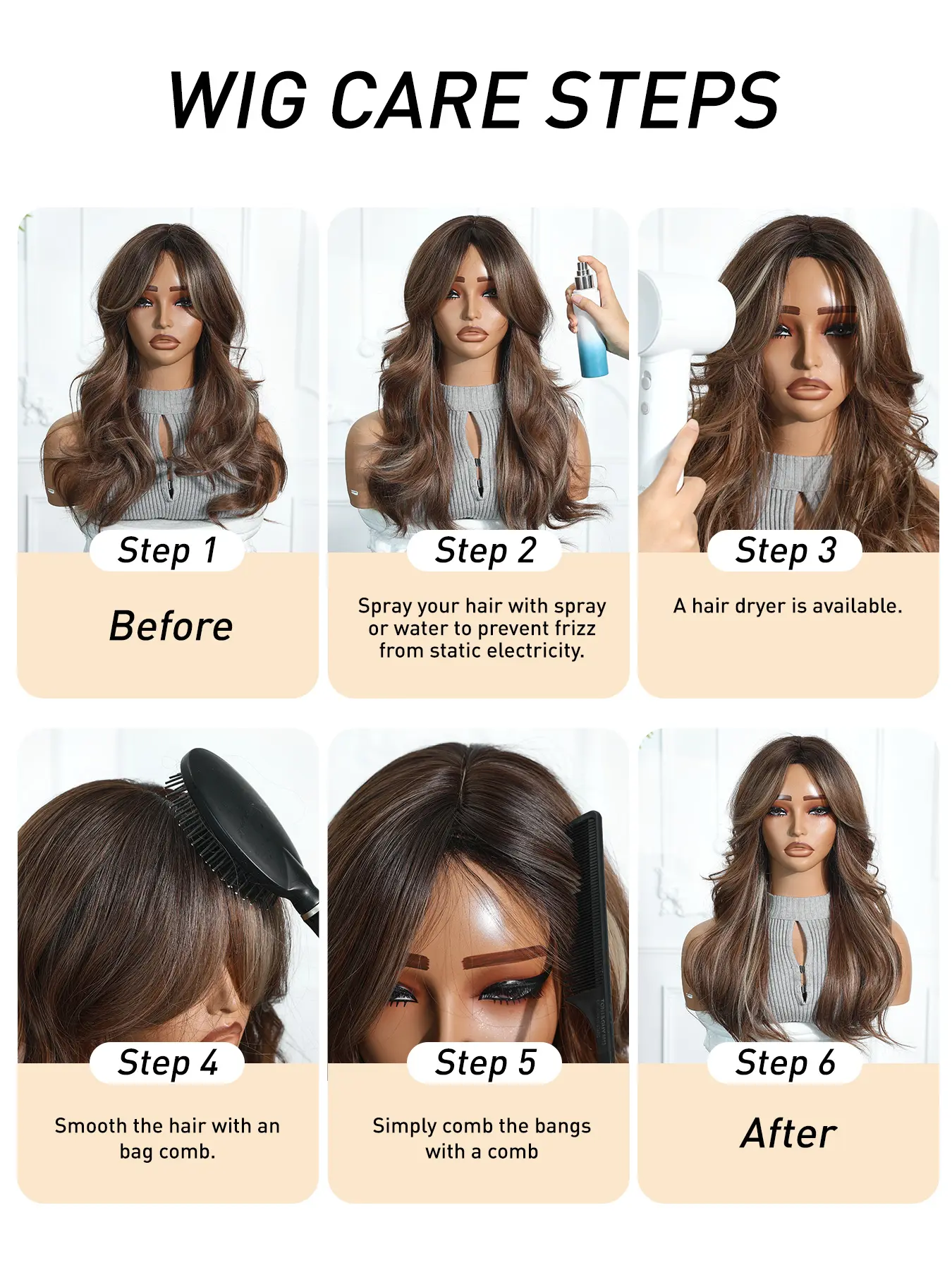 Beautiful color and after you brush her she bounce right back where you want her. Nice thing about this wig is she does really well with styling. I was able to easily curl the bangs.
