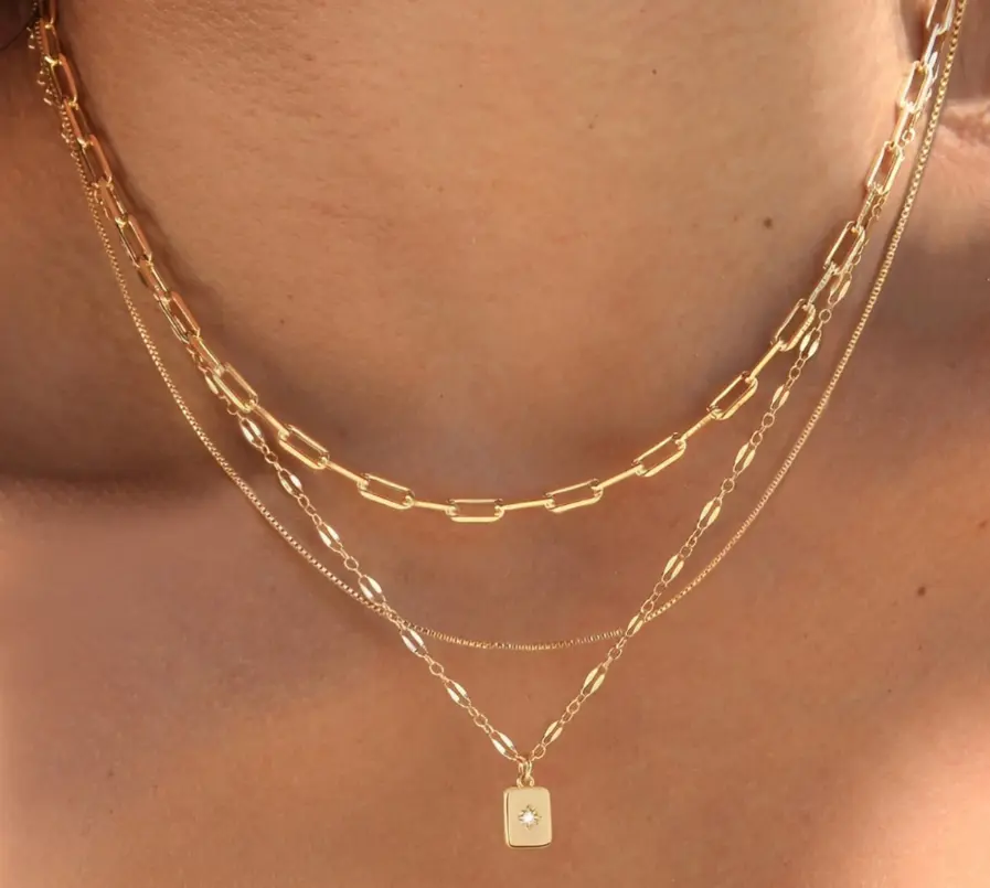 🎁 These necklaces are a thoughtful gift choice. The set includes 3 distinct chain styles, offering versatility in styling. The brass base with 14K gold plating adds a touch of elegance. Choose this set for a special occasion or as a gift for a loved one.