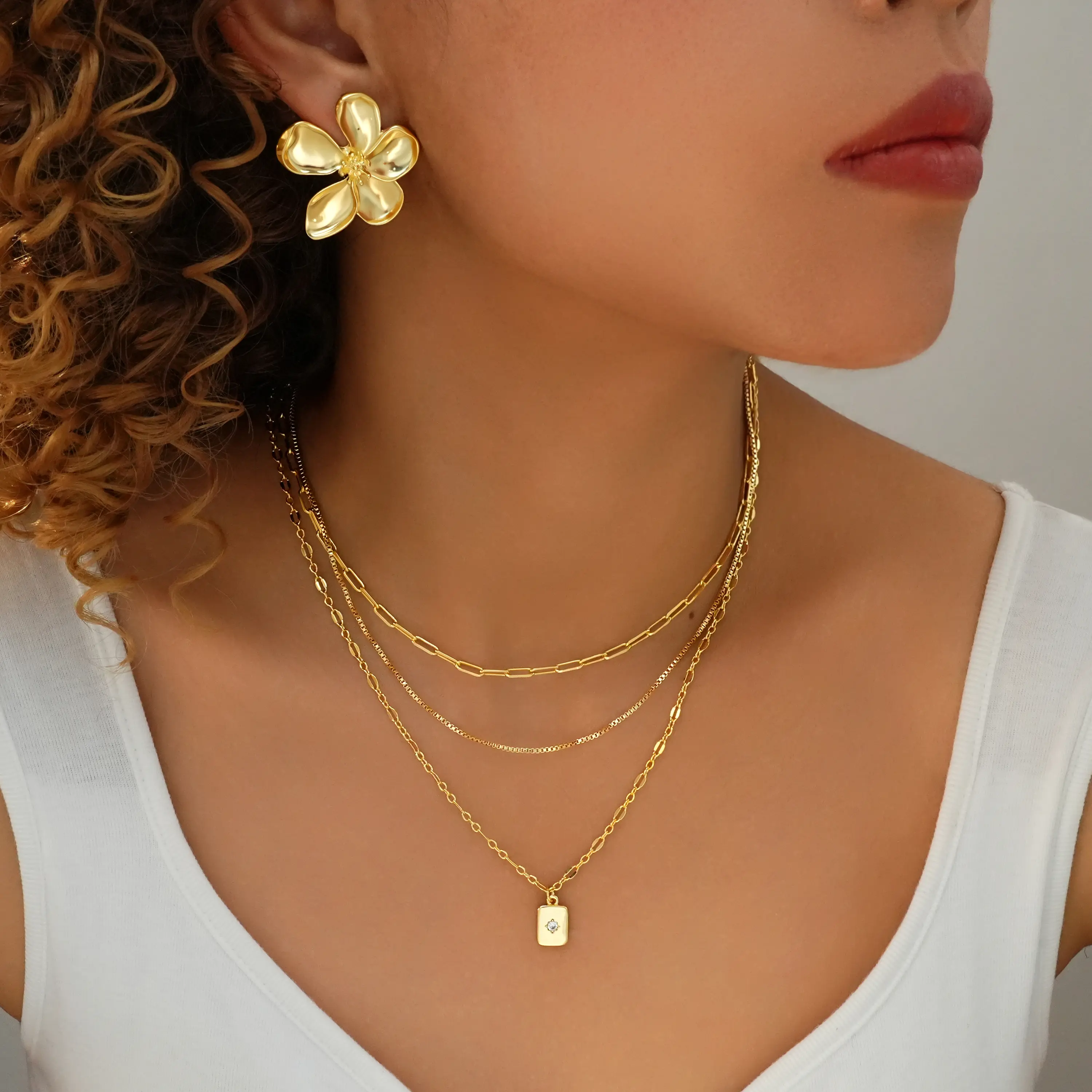 This trendy set includes 3 chain styles: paperclip, box, and pendant lip chain.