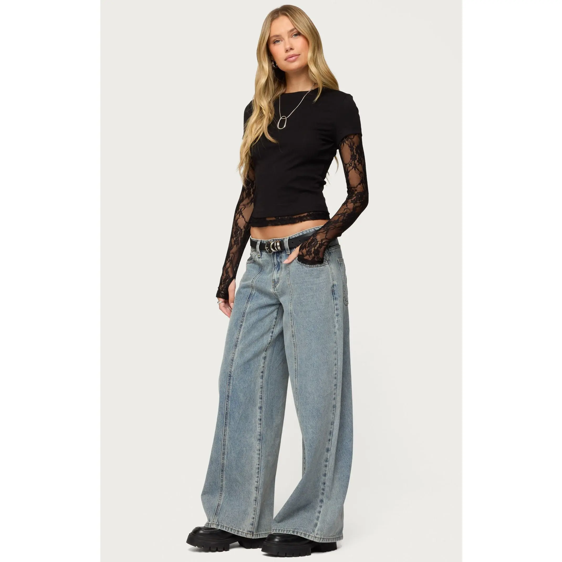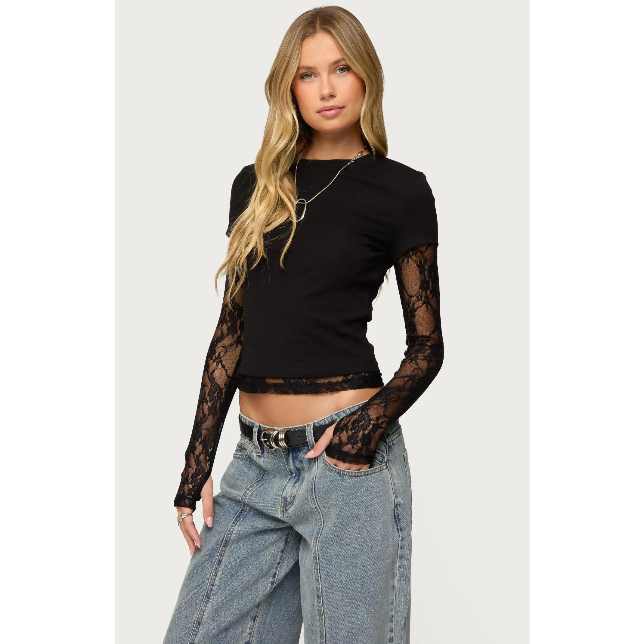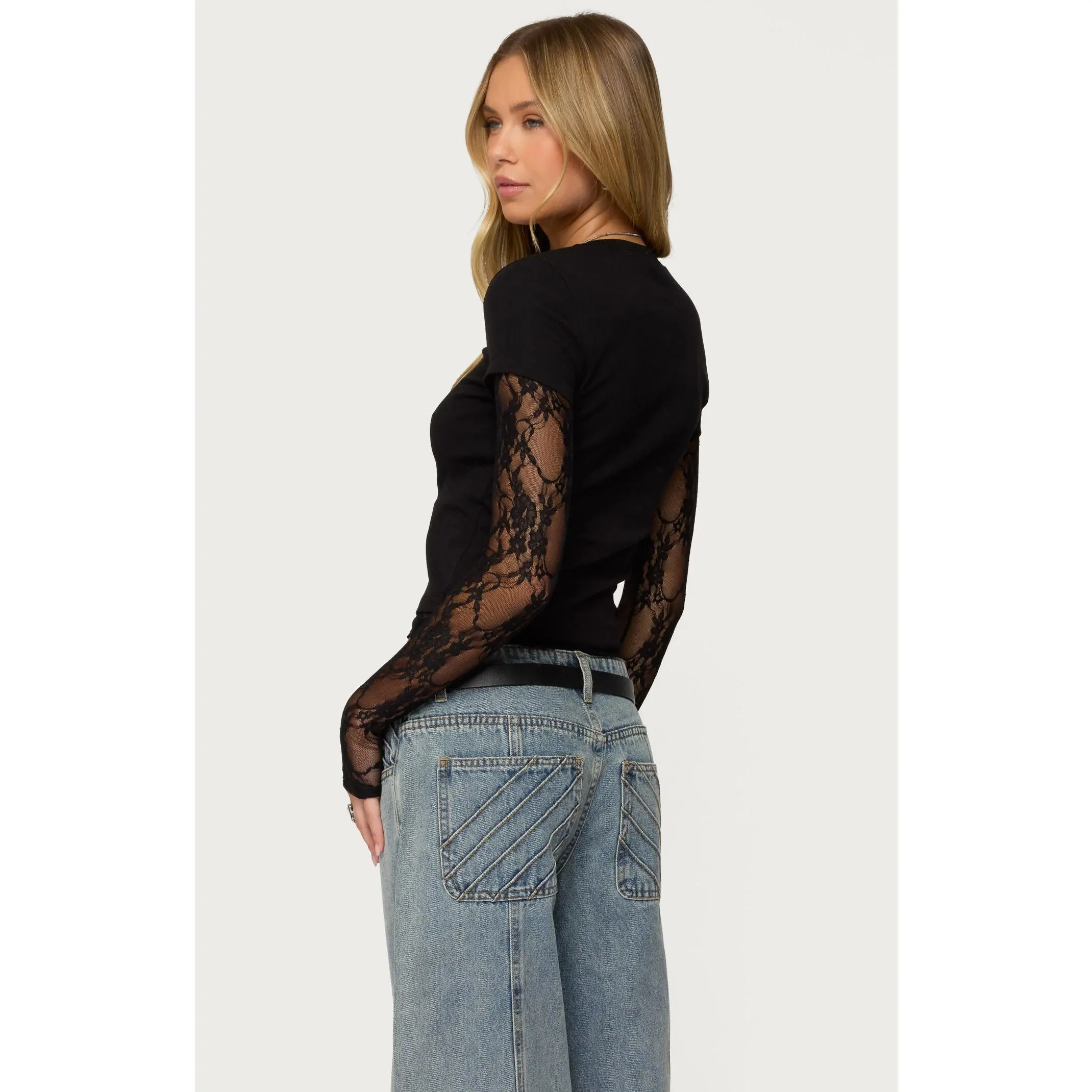 5. Edikted Women's Layered Lace Sleeve T-Shirt