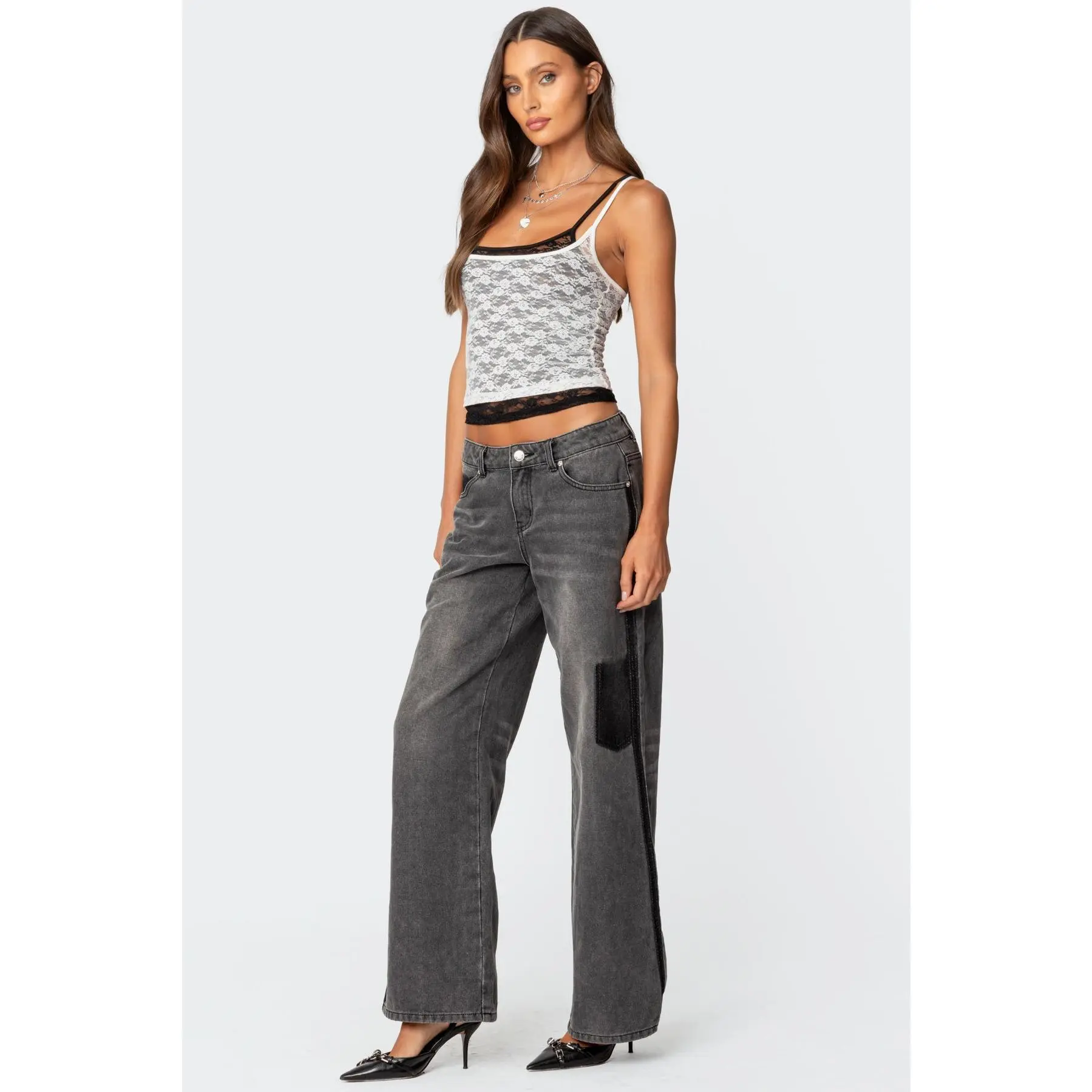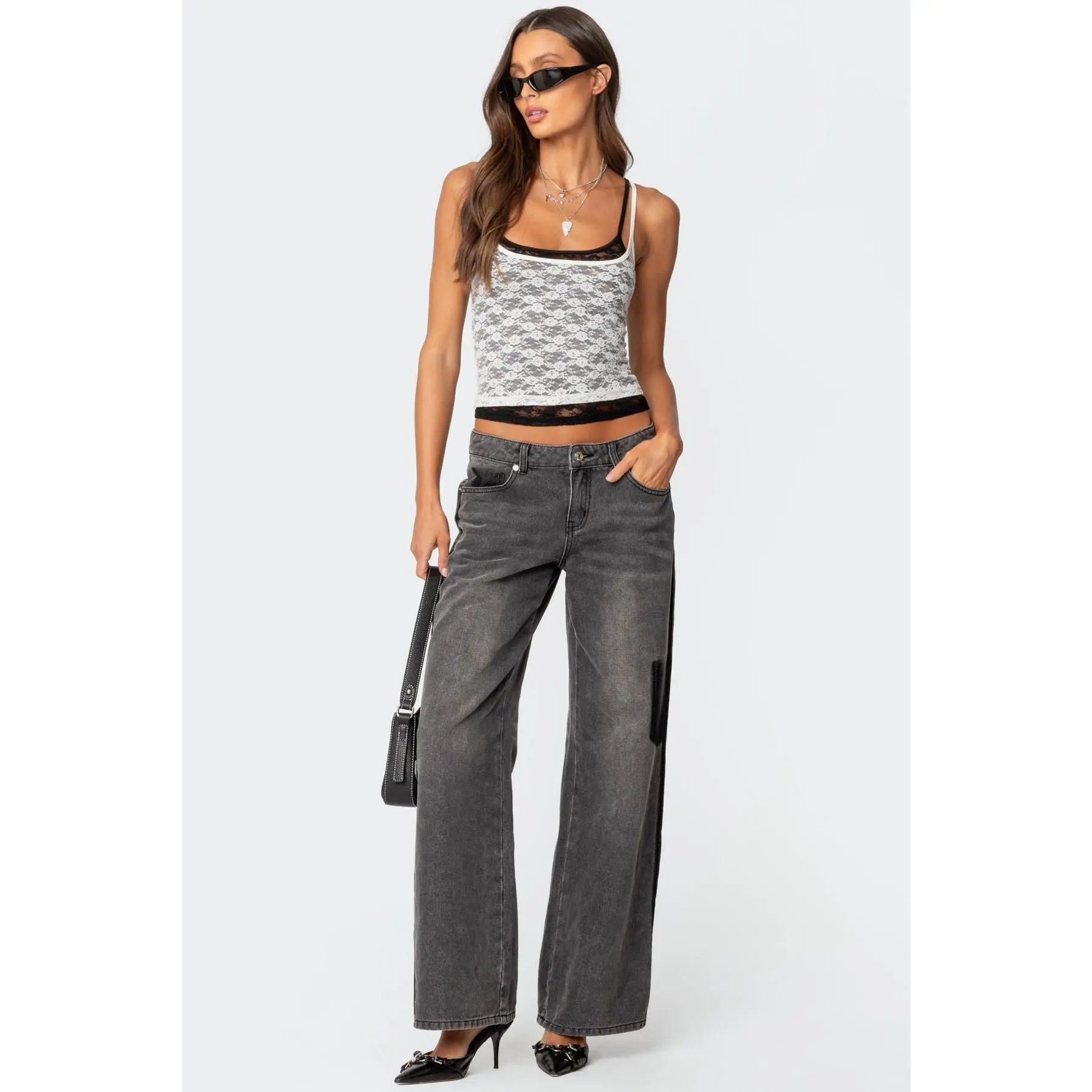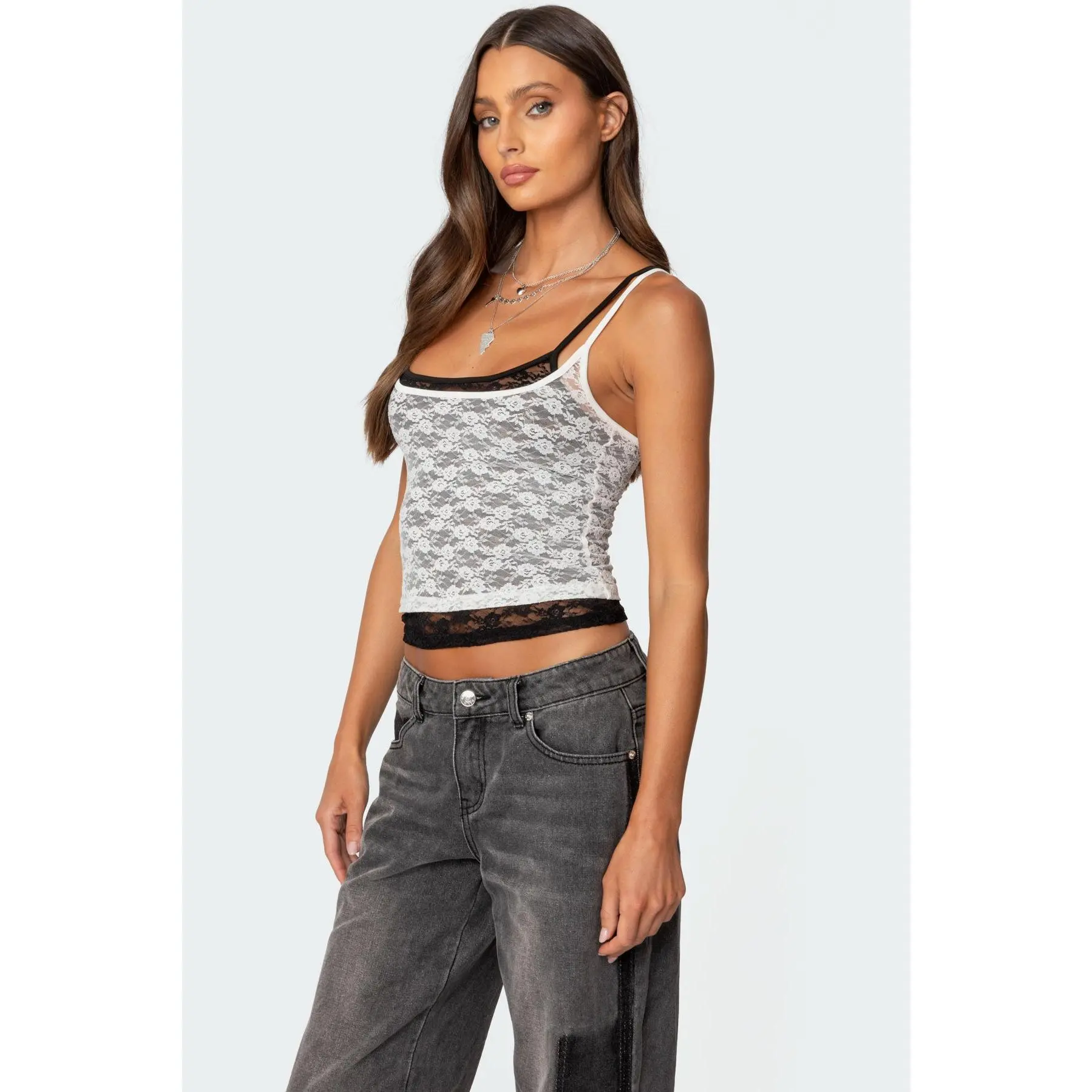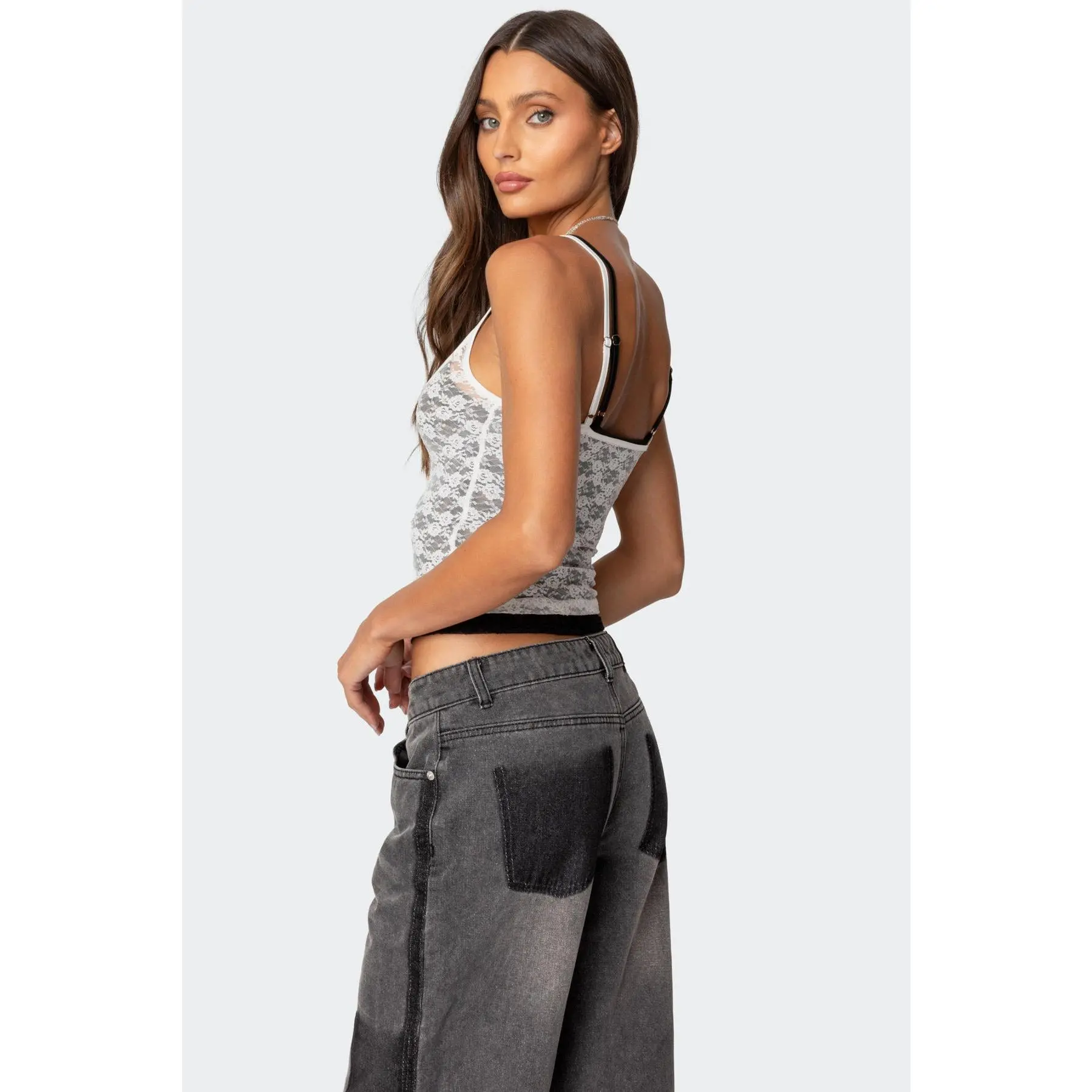 Obsessed with edikted layered lace top #edikted #tryon #haul #lowrisejeans #ediktedmirrorselfie #tiktokshopnewarrivals #lacetop #falldealsforyou #tiktokmademebuyit  #tiktokshopblackfriday #tiktokshopcybermonday  #tiktokshopholidayhaul