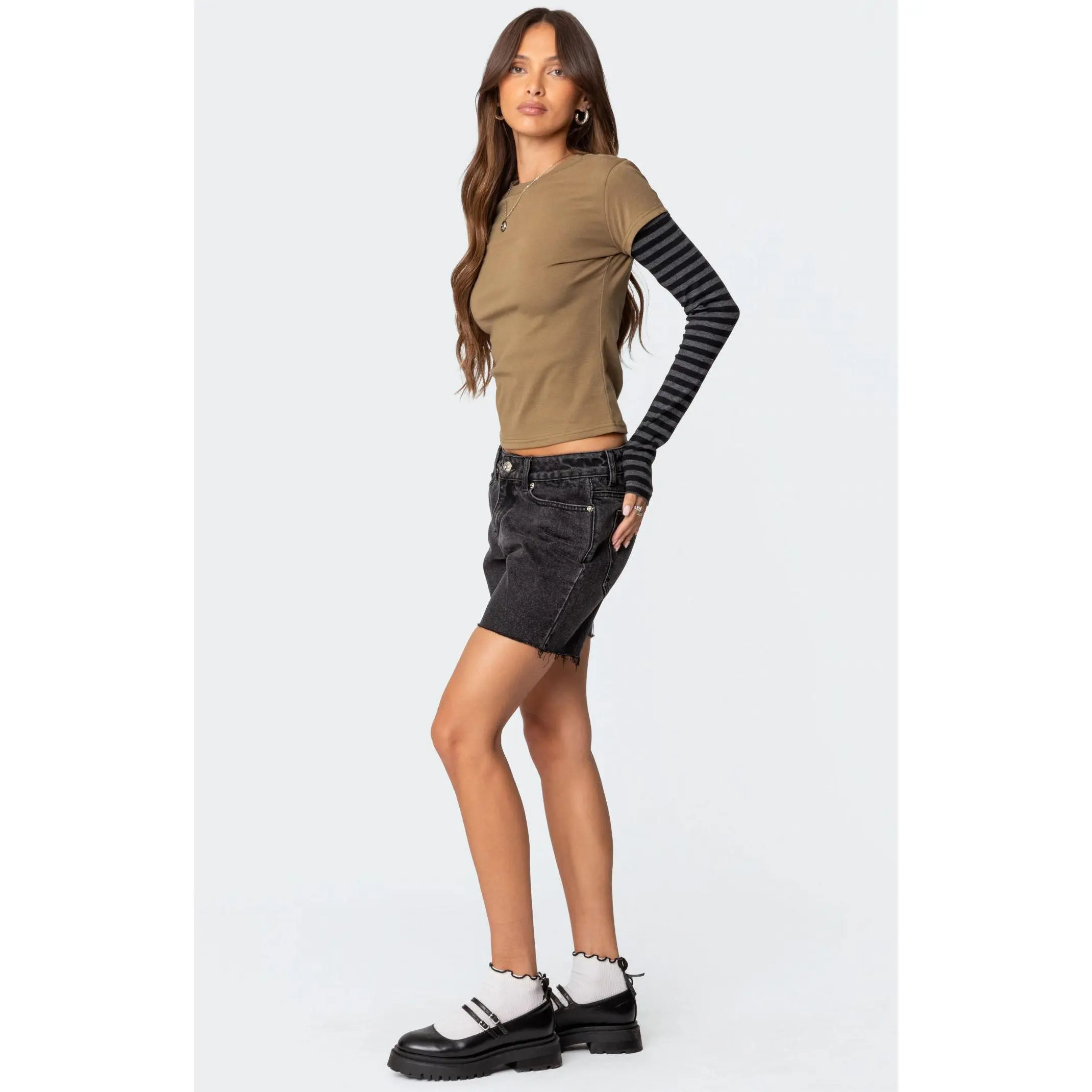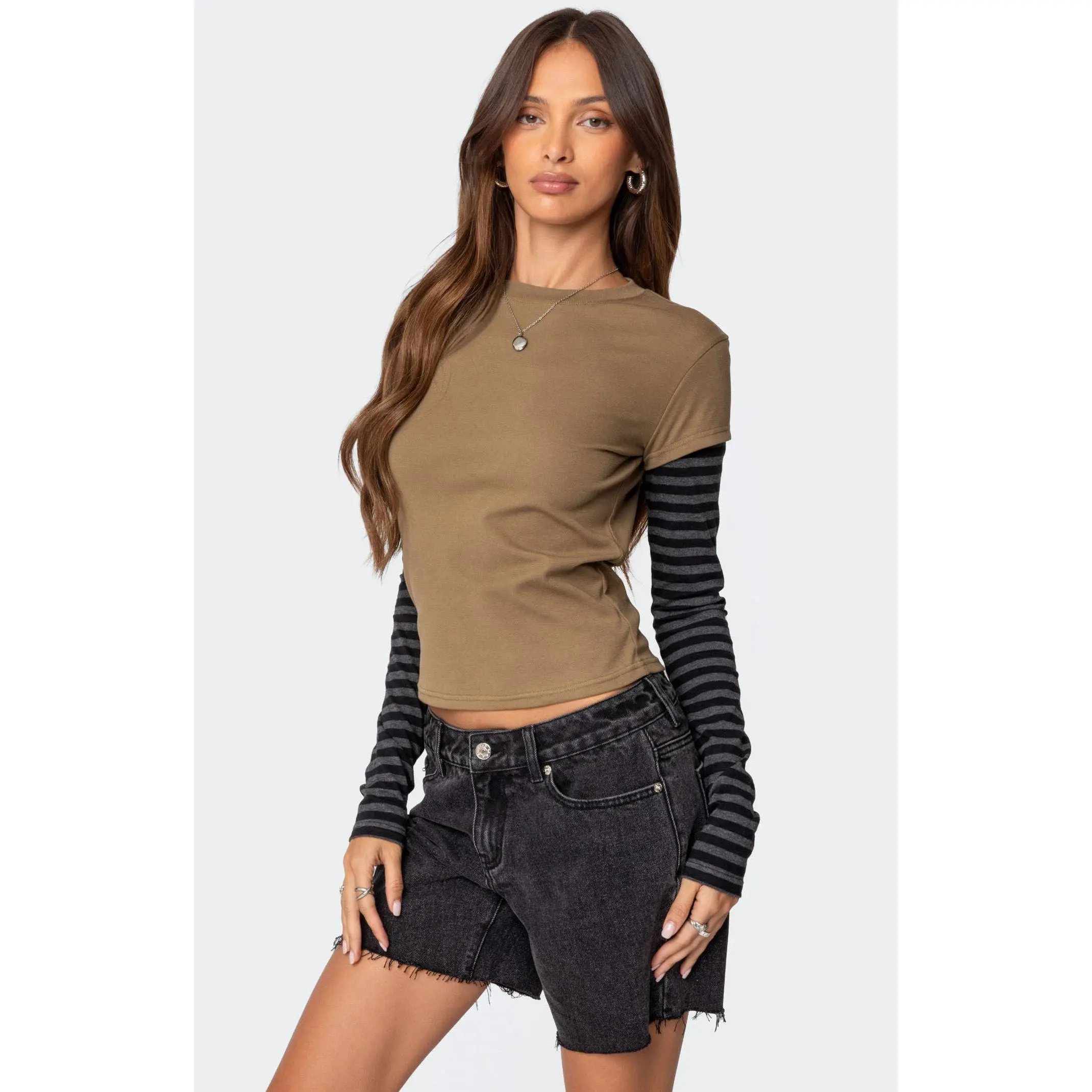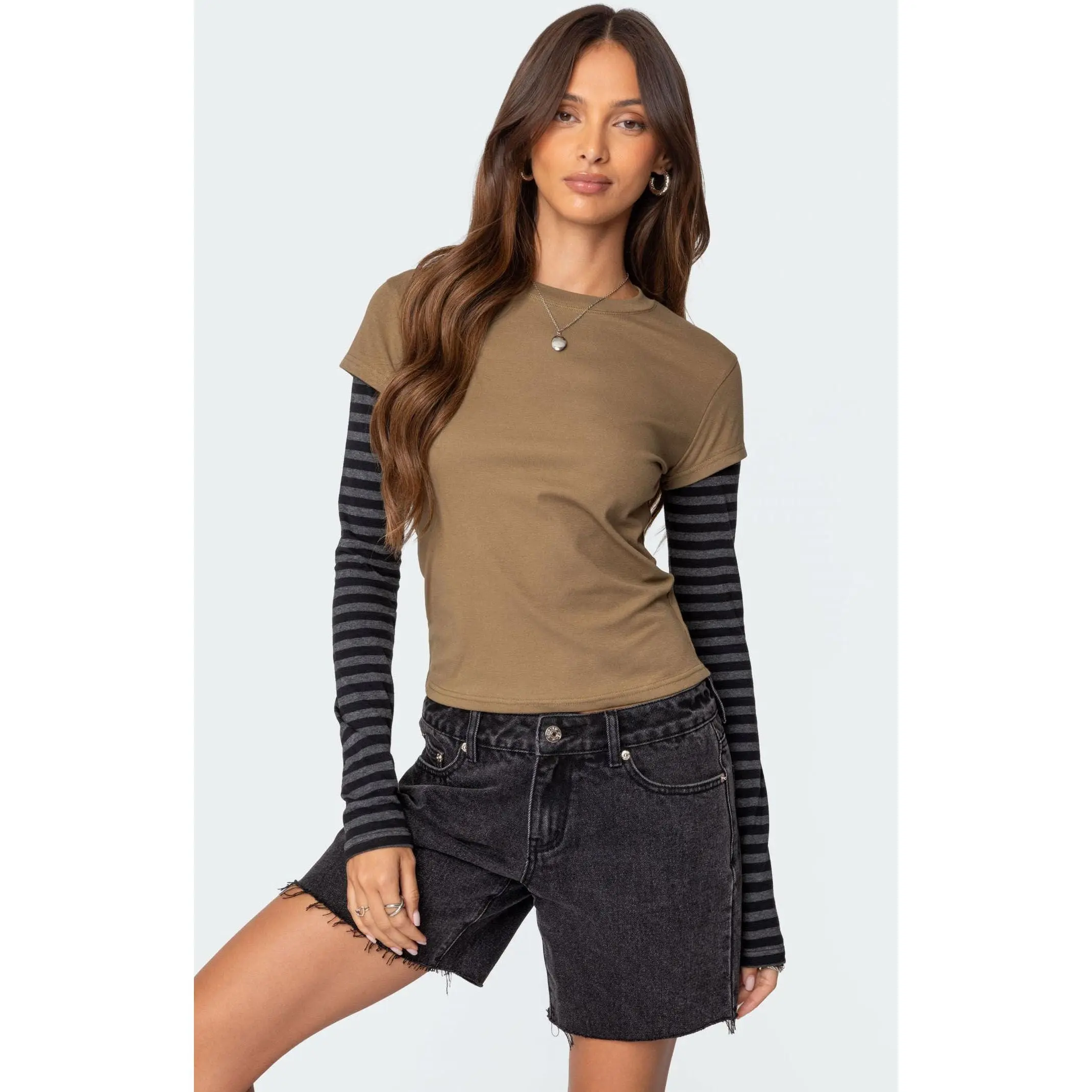 5. Edikted Women's Eliana Layered Long Sleeve T-Shirt