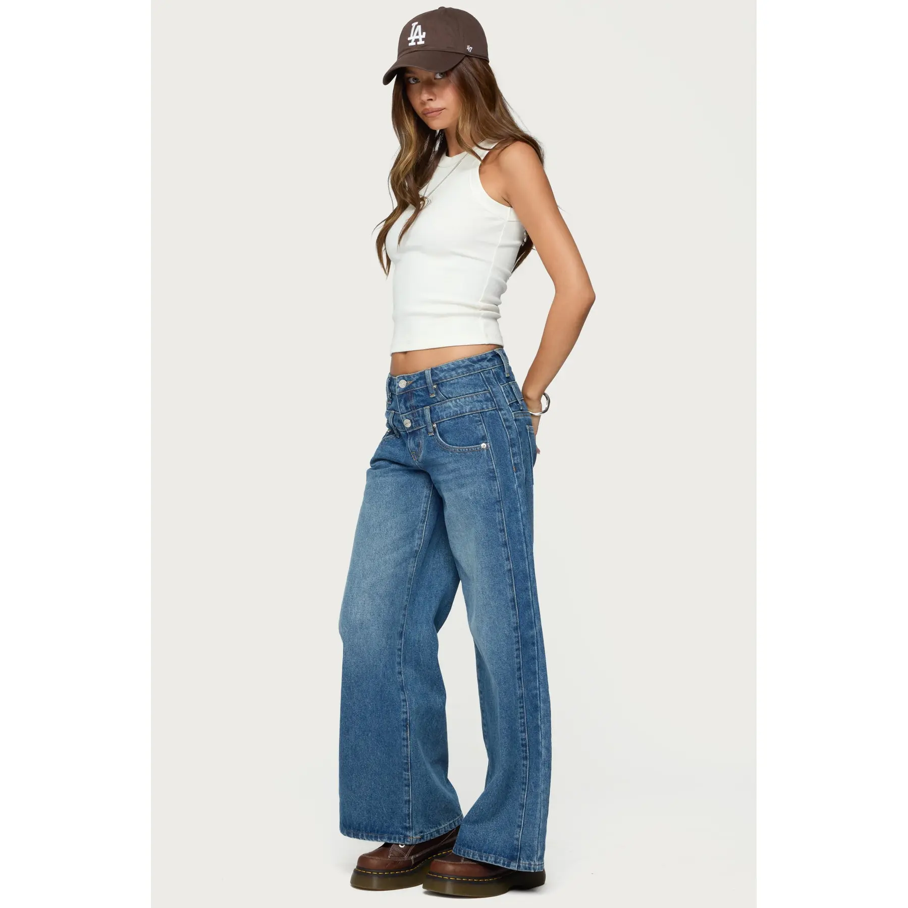 These jeans are so cool #unique #denim #lowrisejeans #summerfashion #ootdinspo #edikted #summerlooks #layers