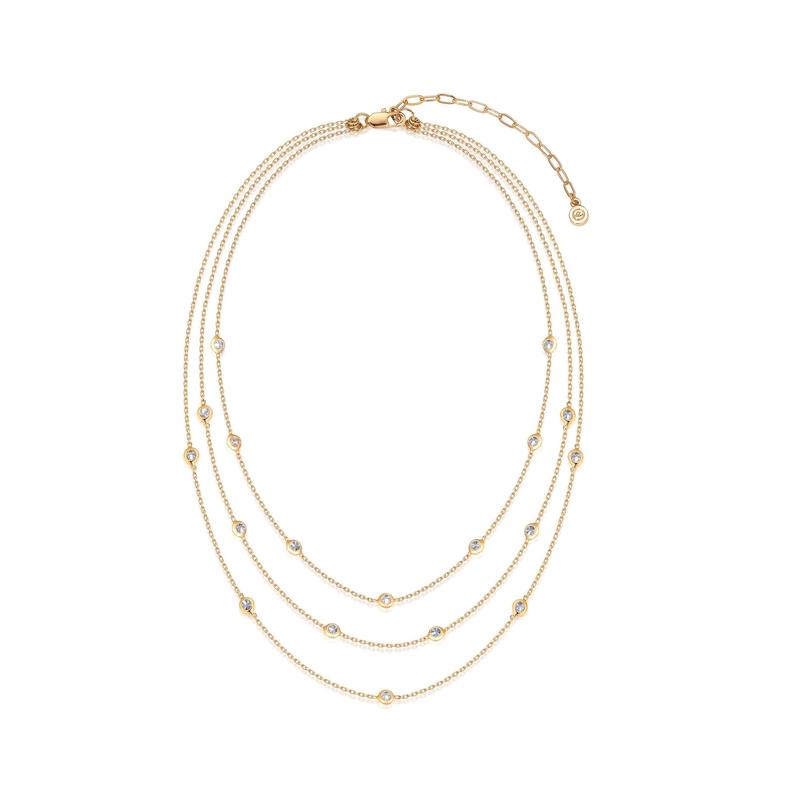 The Ettika Crystal Dotted Layered Necklace is a stunning piece of jewelry. It features 18k gold plating, brass, and cubic zirconia. The necklace comes in layers of 13-15" with a 3" extender. The closure is a lobster clasp, ensuring a secure fit. Perfect for any occasion, this necklace adds a touch of elegance to your outfit.