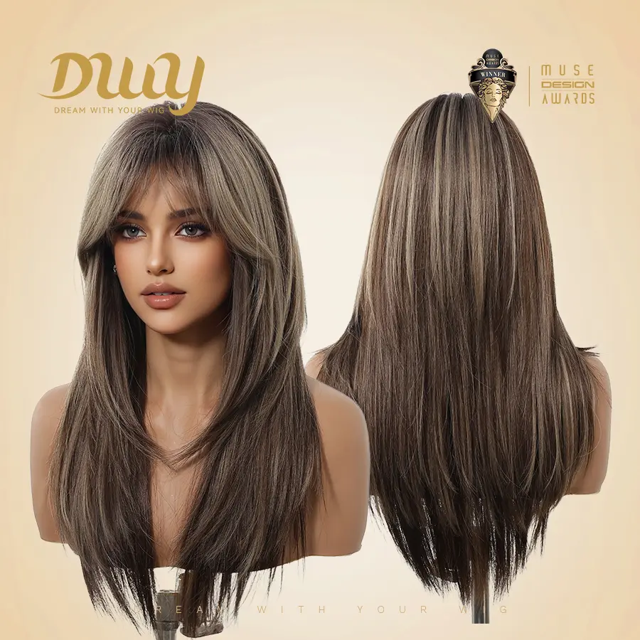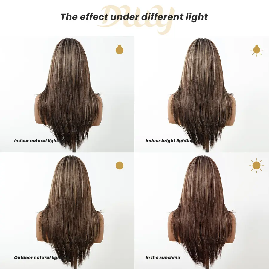 Right out of the box she was perfect. Great color, highlights are realistic not chunky. Fibers feel amazing, low density. I ordered a second one to have as a backup. Ive gotten so many compliments on it. I only had to trim the bangs just slightly. But the long curtain bangs are amazing on this one. You won't be dissapointed girls. I have a small head and she fits great on the smallest setting and wearing the Dreamlover wig cap with it it stays firmly in place. I can brush it without holding a hand on it to keep it from slipping