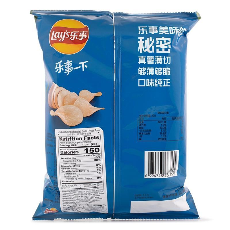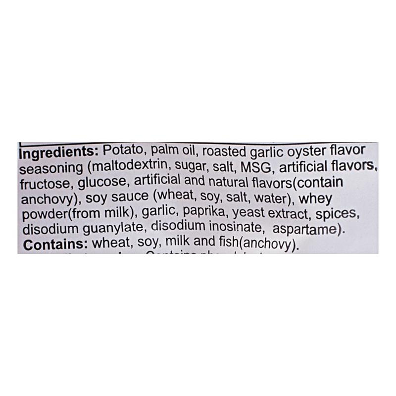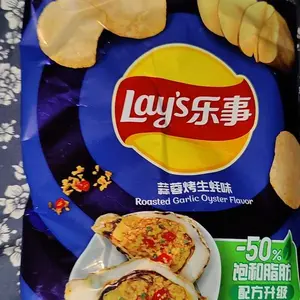 Man I've never had a chip so spot on the flavor it taste just like the garlic oysters I will give it a 7/10 because the garlic is super over powered