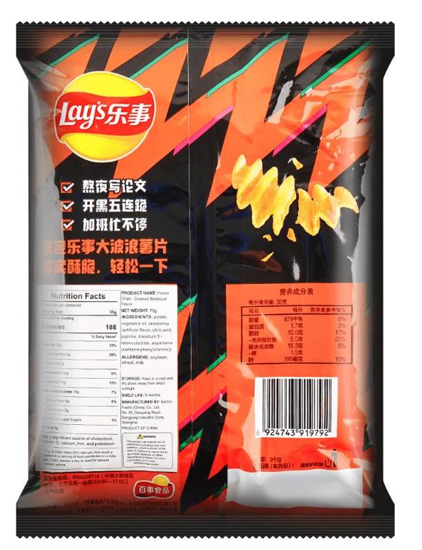 Experience the ultimate snacking pleasure with Lay's Big Wave potato chips. The unique wavy shape locks in the natural potato flavor, delivering a crispy and satisfying crunch. The bold and savory charcoal-grilled pork belly flavor will tantalize your taste buds.