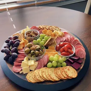The centerpiece of every fine cocktail hour or wine & cheese tasting, the Lazy Susan is a circular, rotating serving tray made of fired acacia with a 1" tall chalkboard rim and included soapstone pencil for easy labeling. Your guests will love your presentation with this modern and refined serving platter.