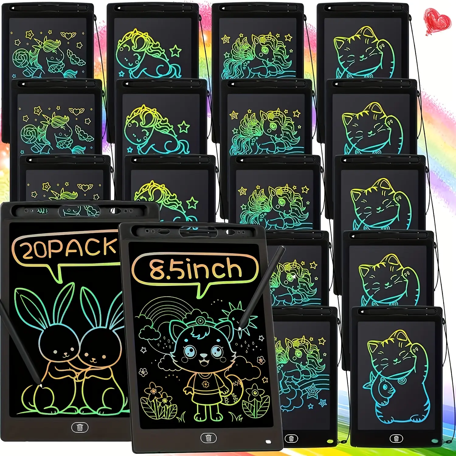 20 Pack LCD Writing Board For Kids, Doodle Board Reusable Board Drawing Erasable Painting Pads Educational Toy For Birthday Gifts Valentine's Day Stationery Easter Gifts for the Start of School Season