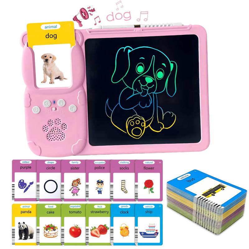 Innovative voice flashcards are linked with the LCD drawing board to create a “2-in-1” learning and creation scenario: cognizing things through interactive cards and practicing doodling on the drawing board at the same time, stimulating creativity and artistic expression.