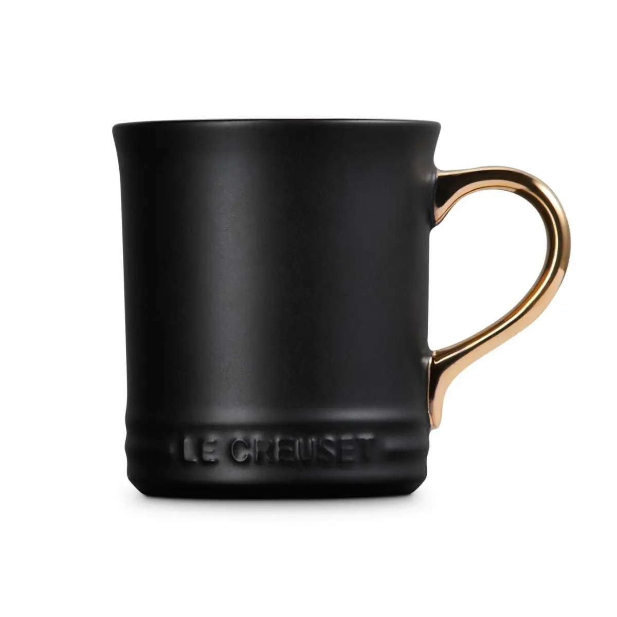 Le Creuset 14oz Gold Metallic Handle Mug - Licorice Features: