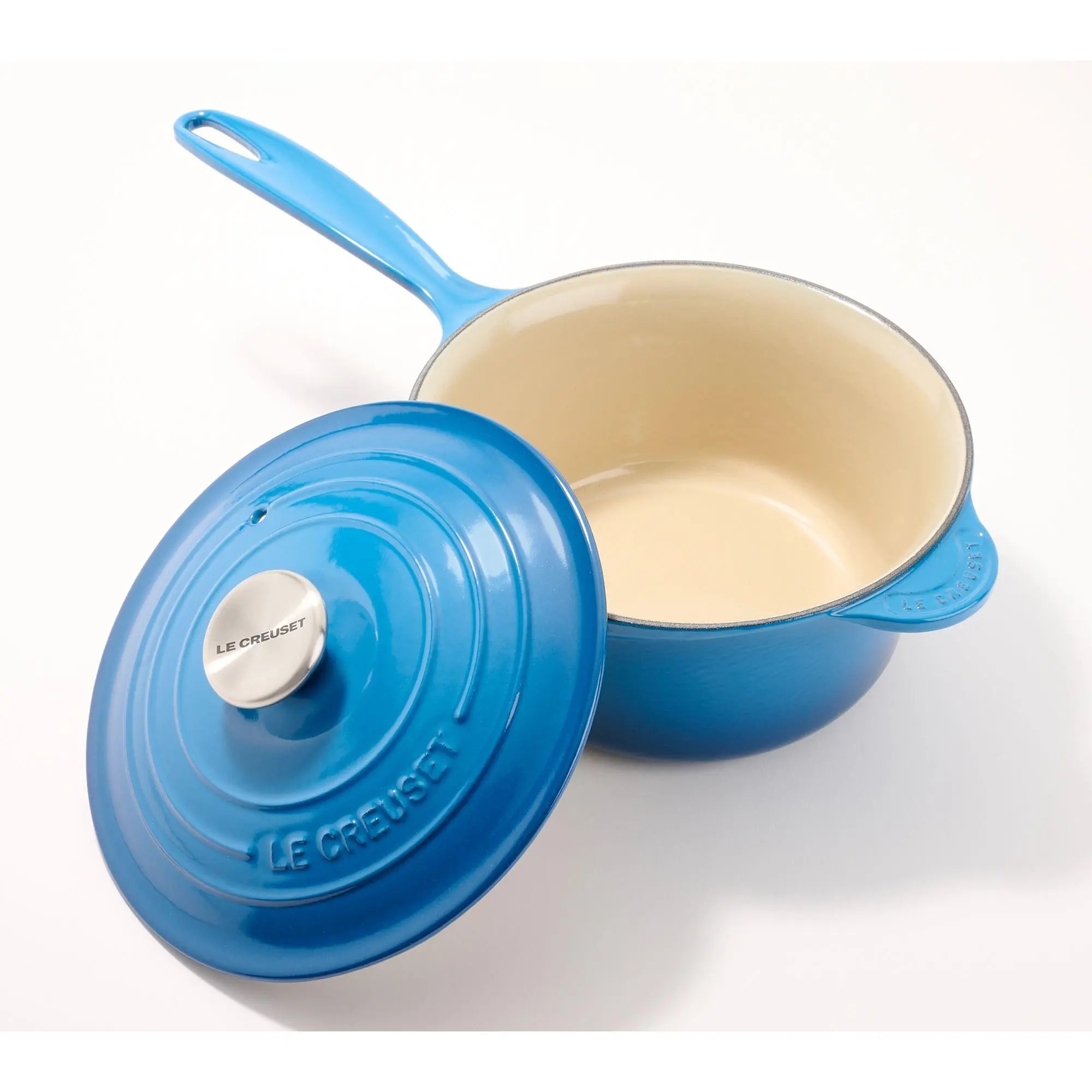 The sauce is on! Quickly whip up sides, grains, gravy, and more with this 2.75-quart cast-iron saucepan. The curved inside and rounded base make it ideal for stirring, while the extended helper handle makes for easy transport from cooktop to table. From Le Creuset.
