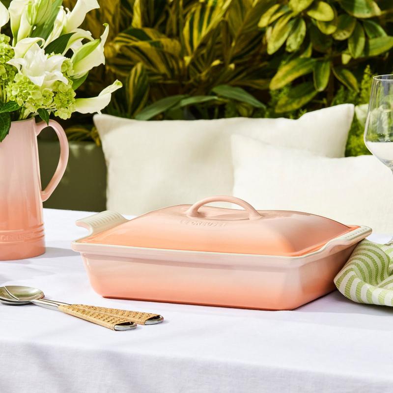 Le Creuset 4 Qt. Rectangular Heritage Covered Casserole (Pêche) Features: