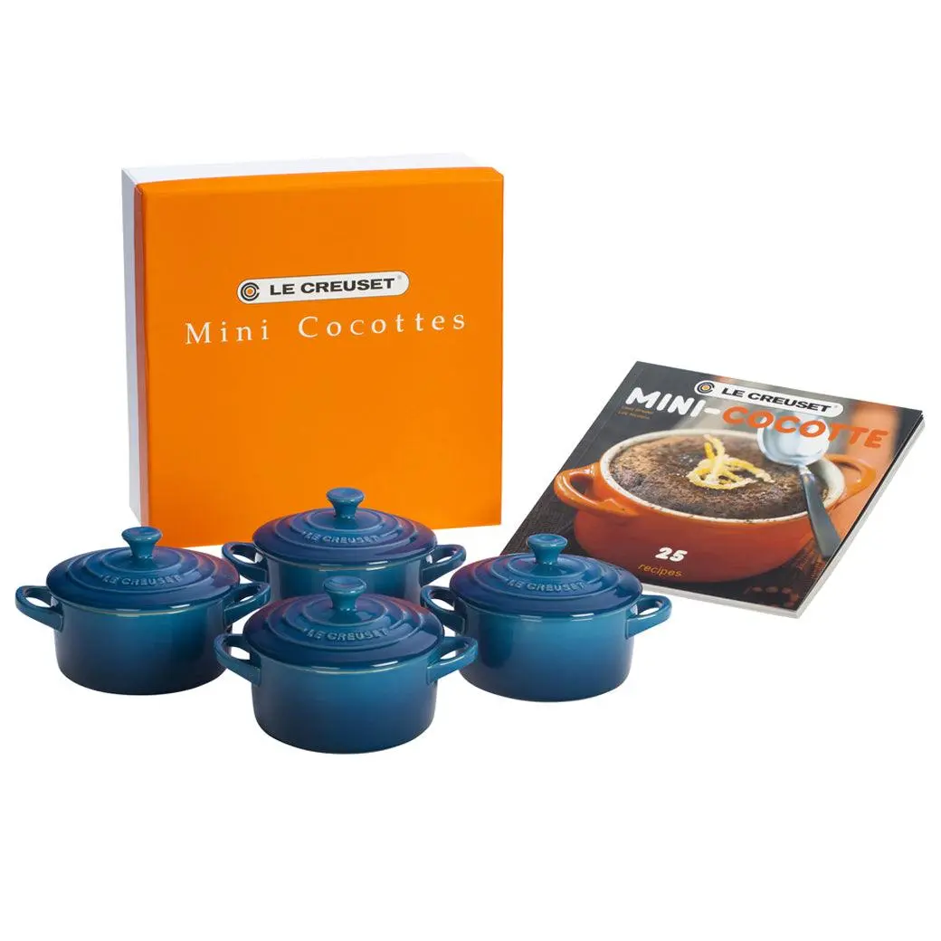 Le Creuset Mini Cocottes – Set of 4 with Cookbook | Serve in Style, Bake with Fun