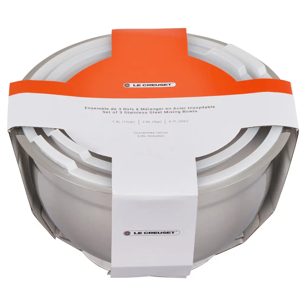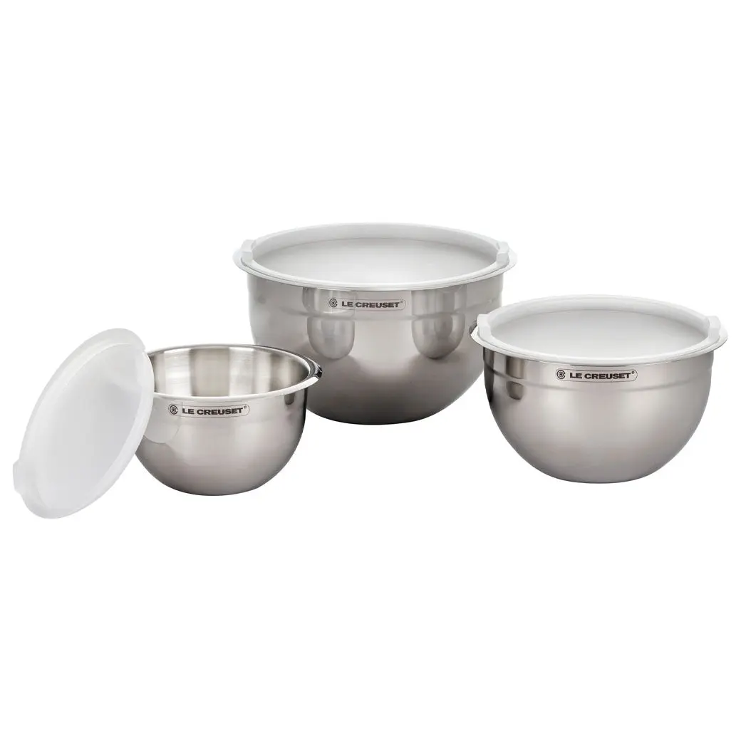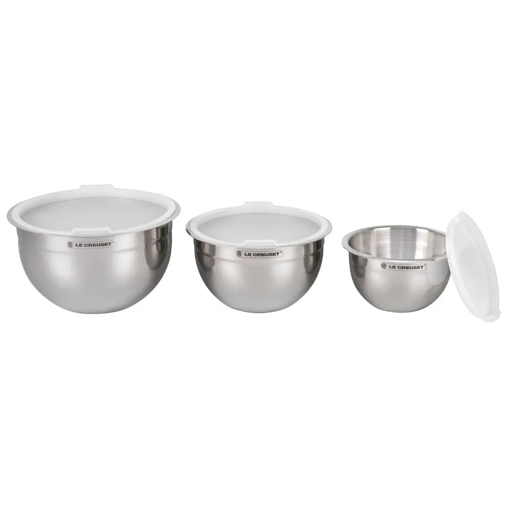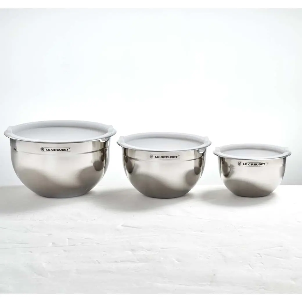 Le Creuset Stainless Steel Mixing Bowls – Set of 3 with Airtight Lids & Non-Slip Bases