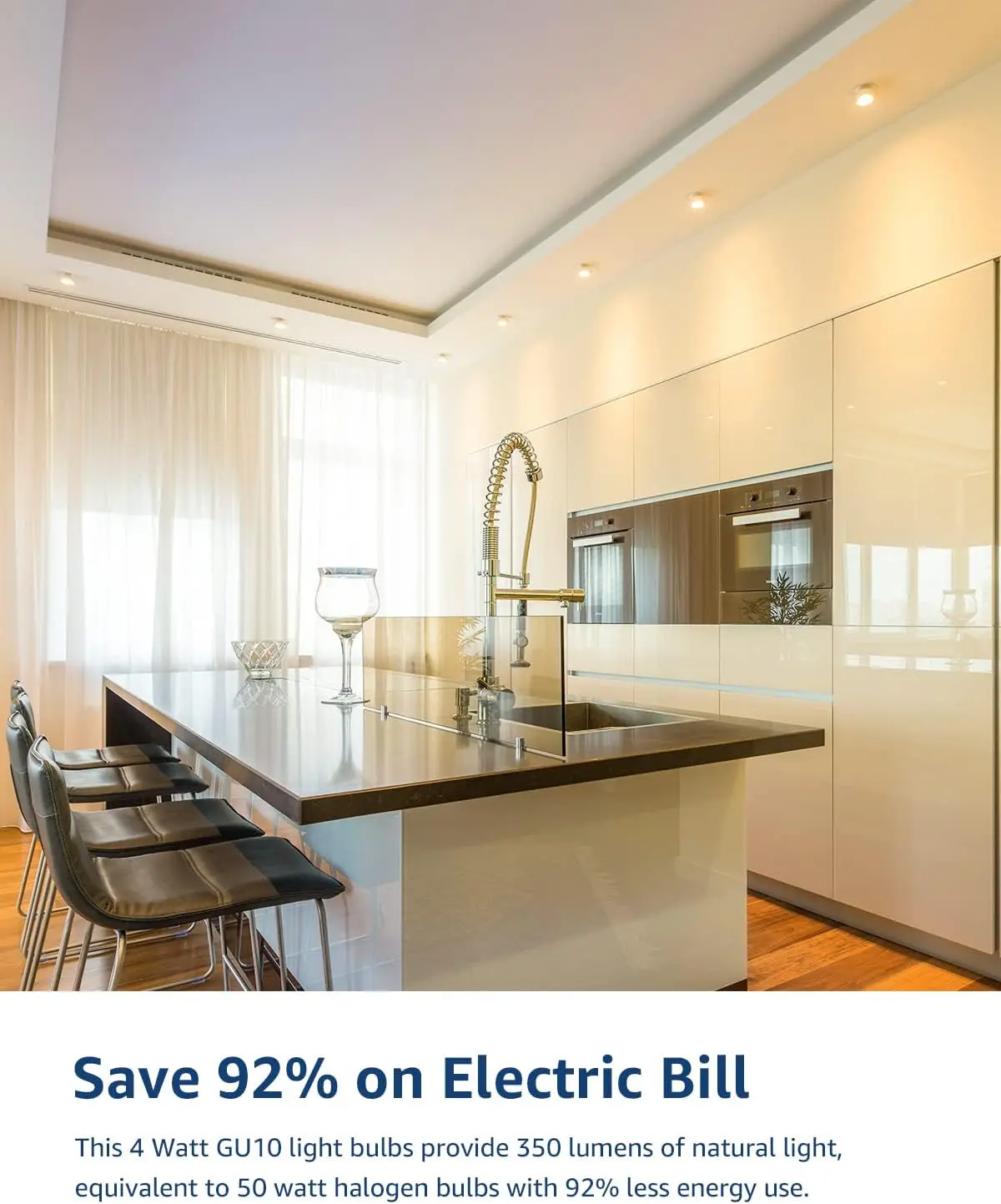 ·4W GU10 LED bulbs replace 50W halogen bulbs, saving 90% on electricity bills. 🌟