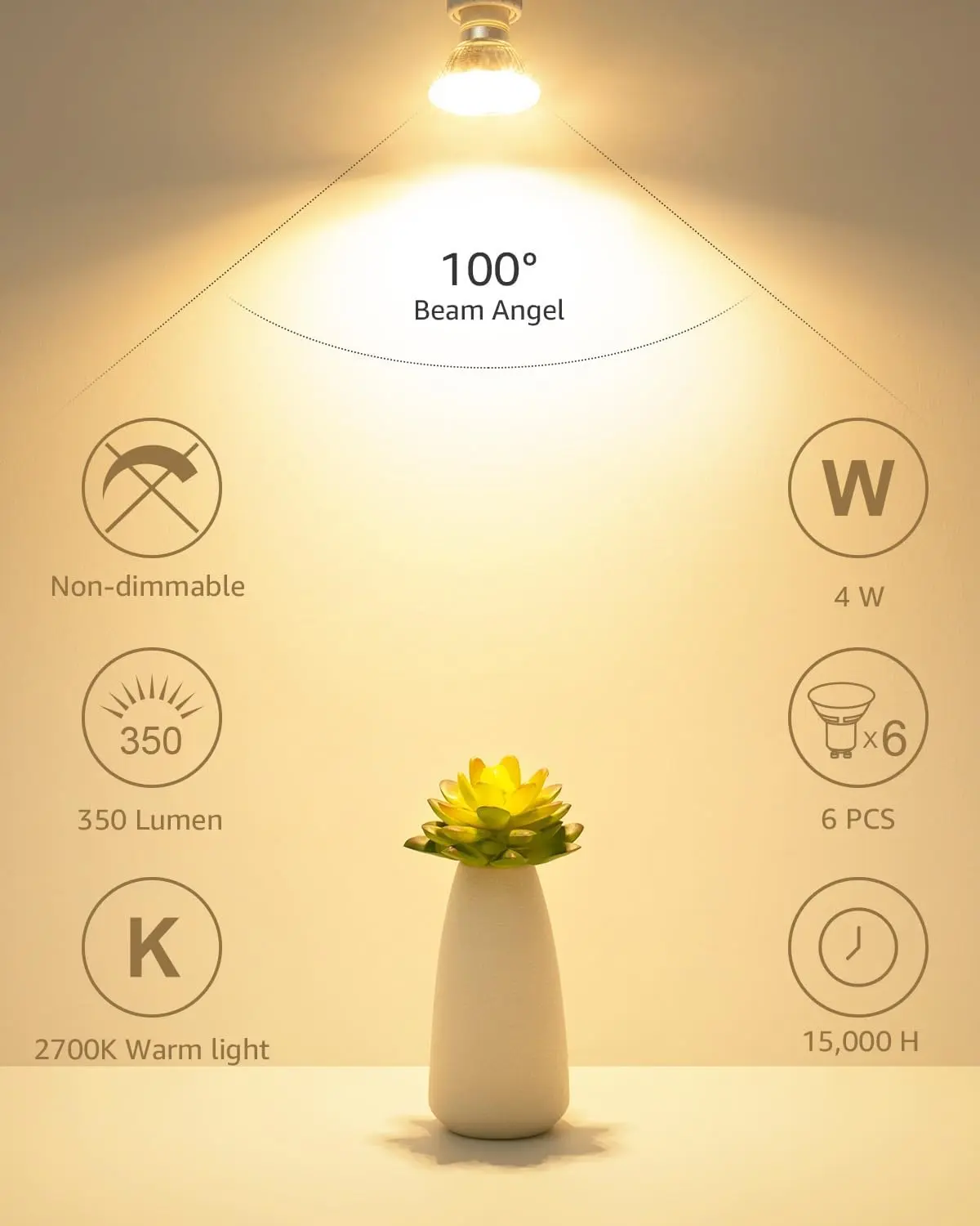 2700K Warm Light & 100° Beam Angle