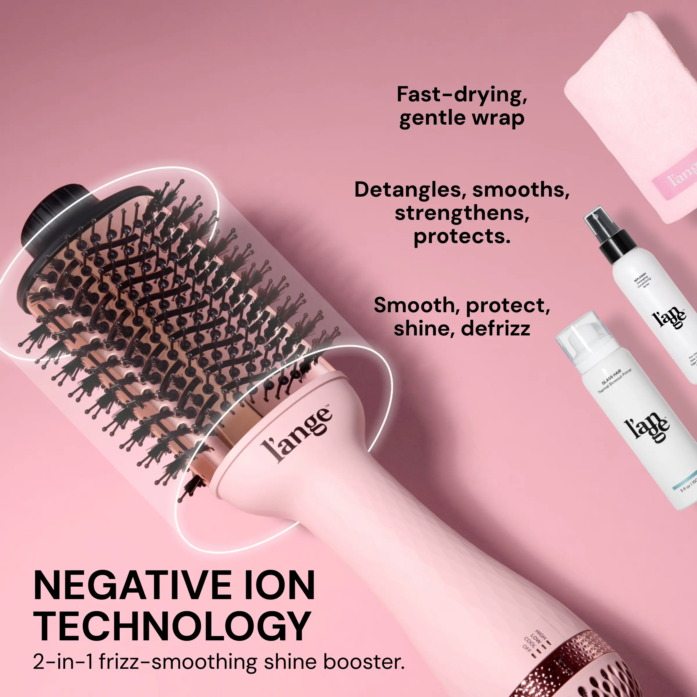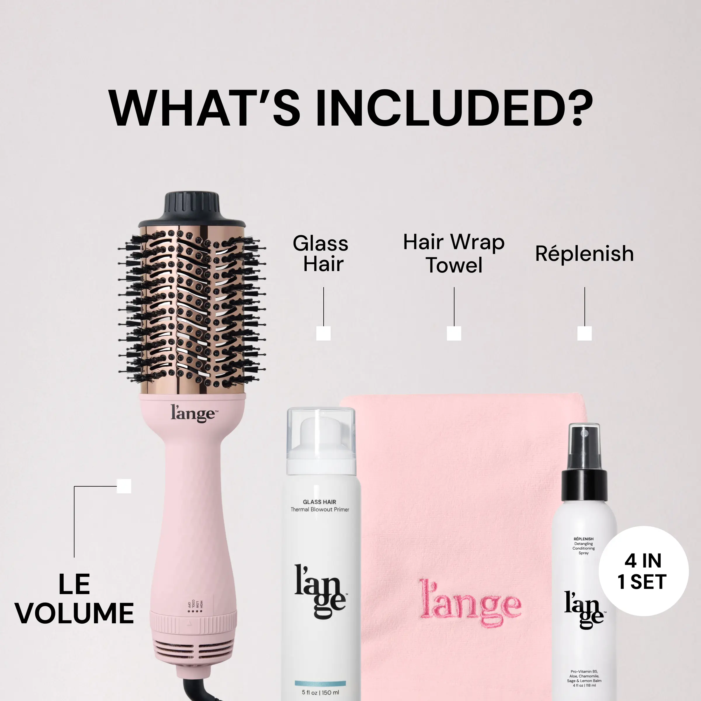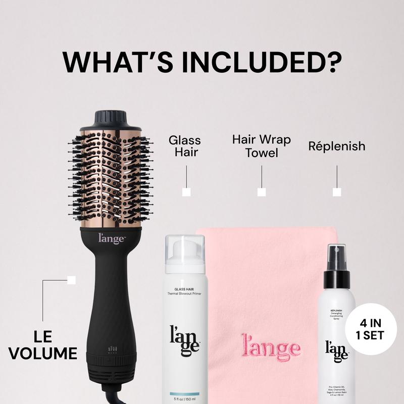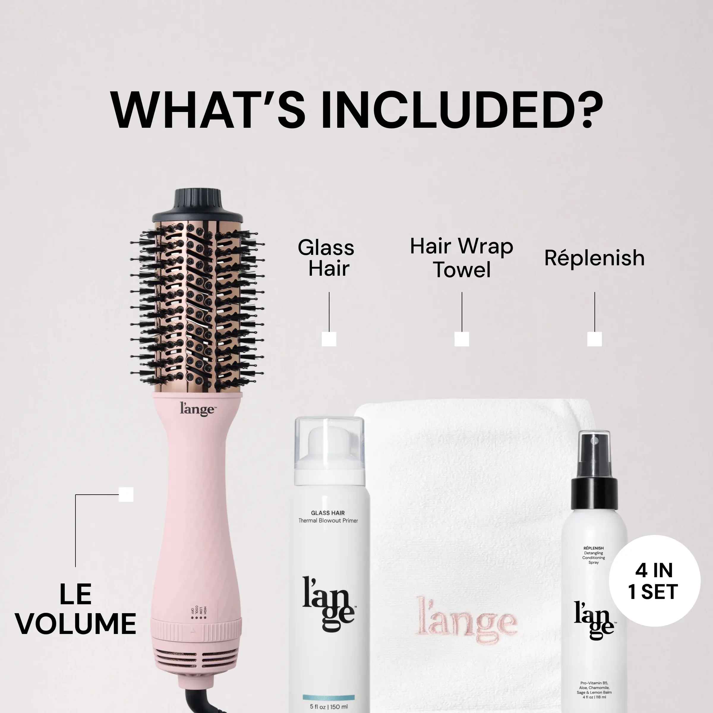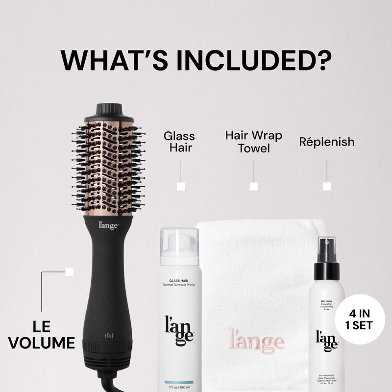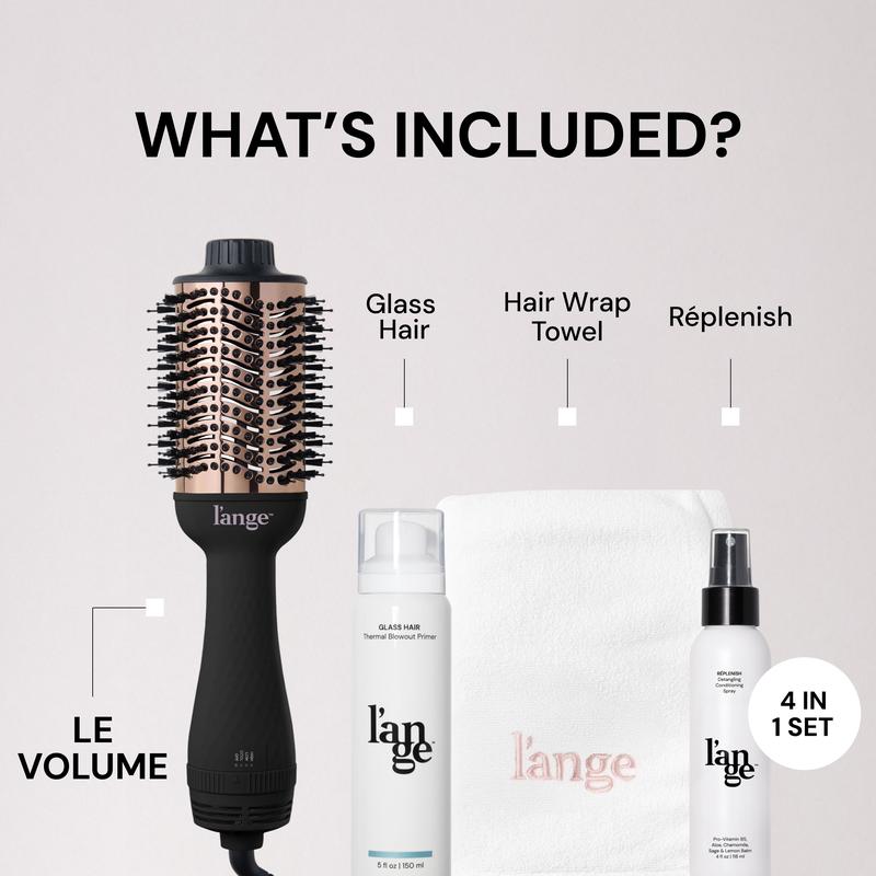Bid farewell to frizzy locks and go for a mirror-like, glossy, voluminous blowout! Featuring our bestselling Le Volume 2-in-1 Titanium Brush Dryer, frizz-fighting treatment, thermal protectant, and detangling spray.