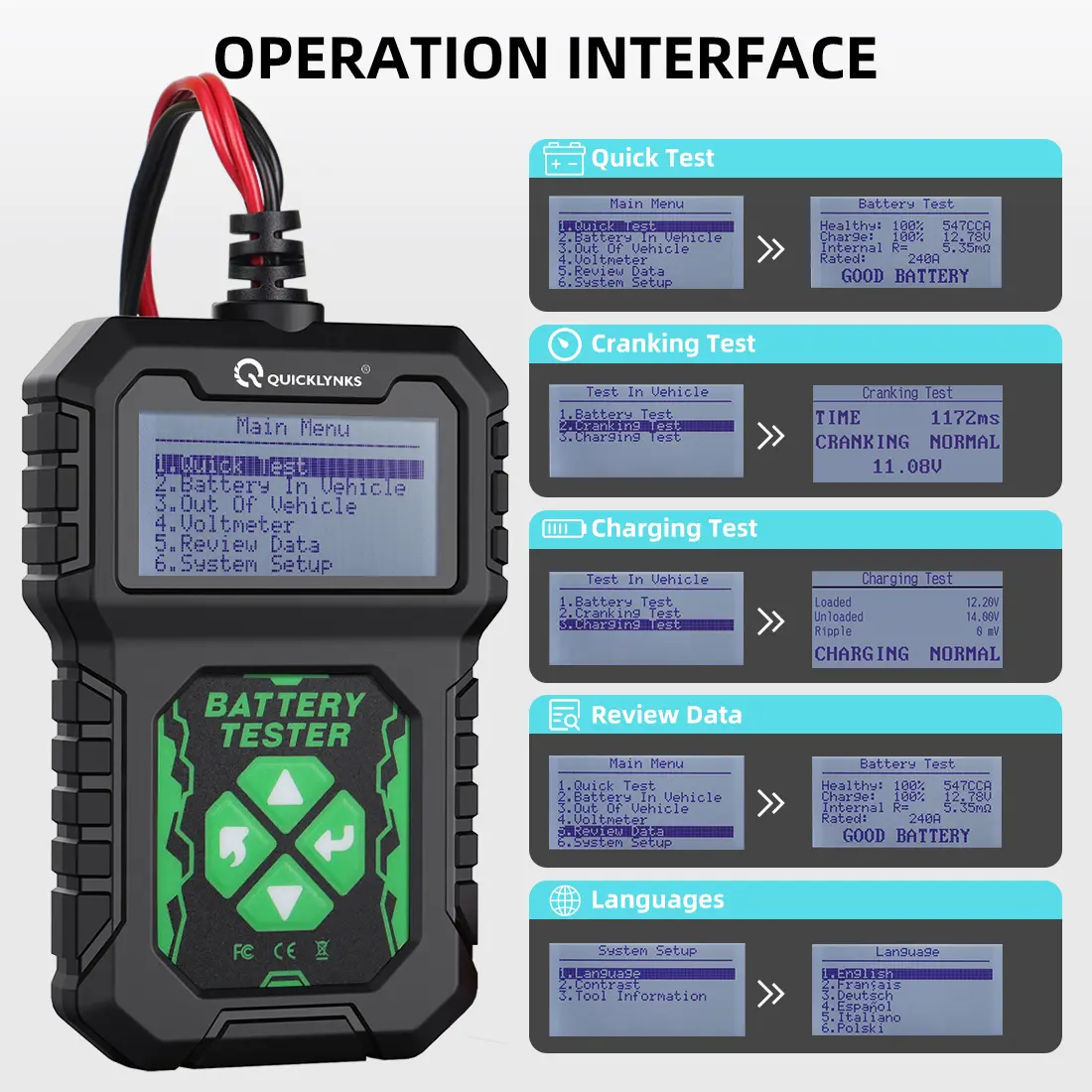 • Quickly enter the Ah battery value to test the batteries in batches.