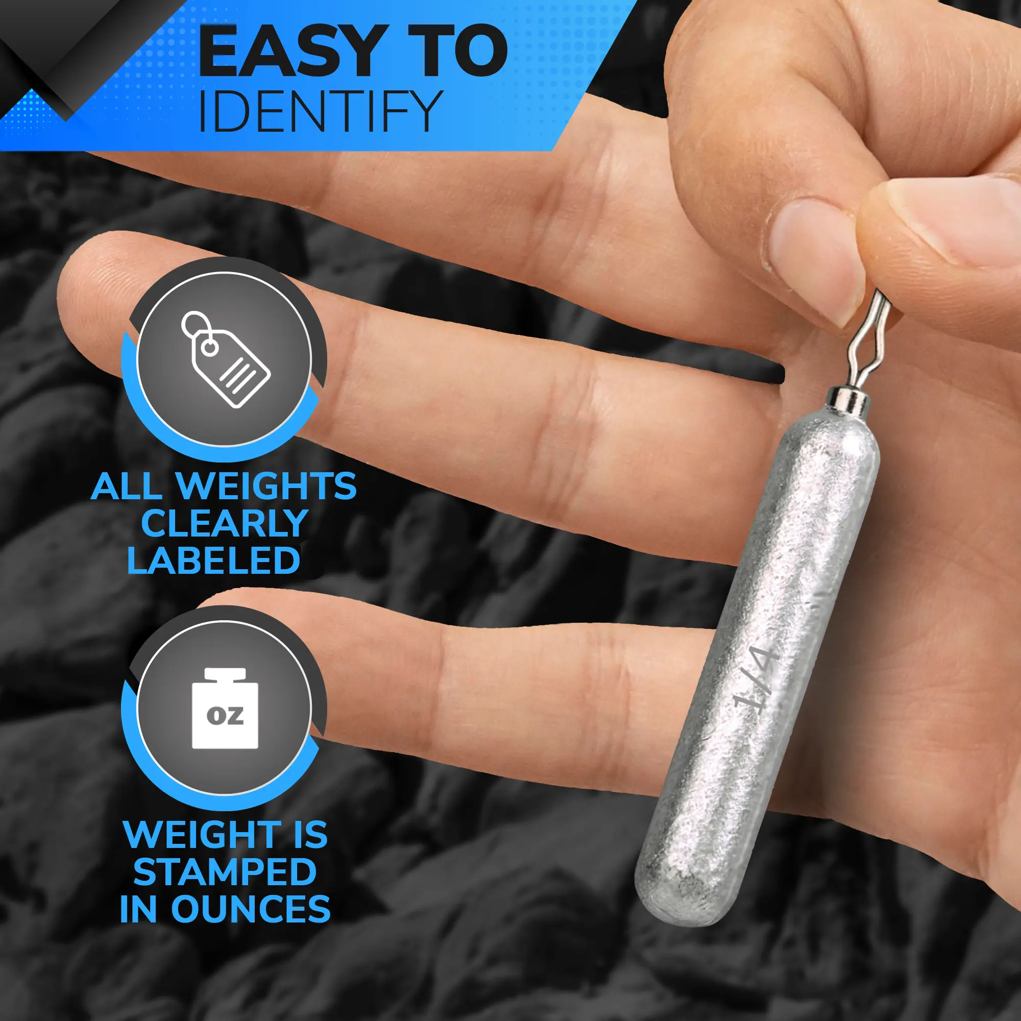·30-Piece Variety: 10 each of the "Big 3" sizes (1/8, 3/16, 1/4 oz).