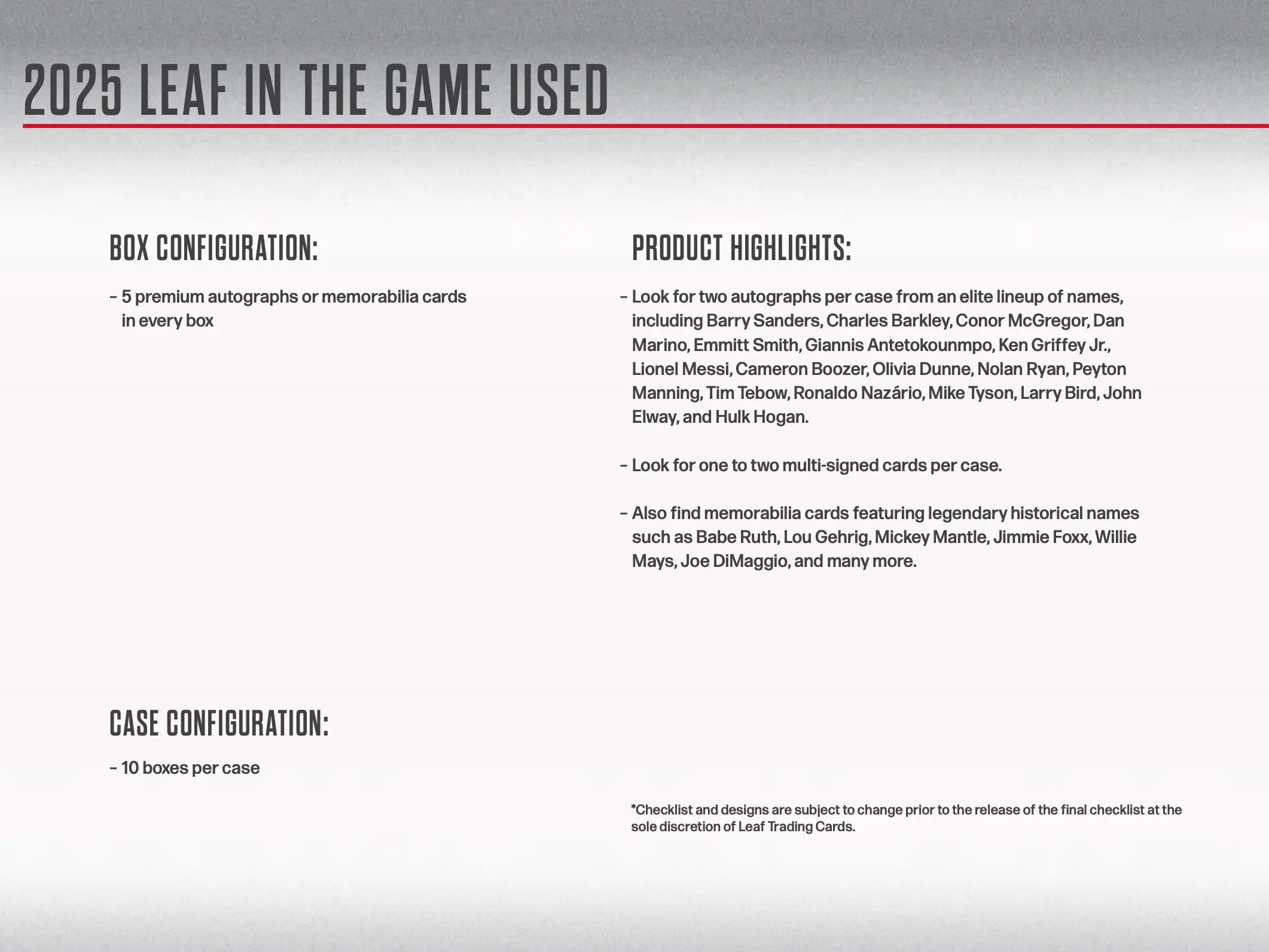 2025 Leaf In the Game Hobby Box - 5 premium autographs or memorabilia cards per box