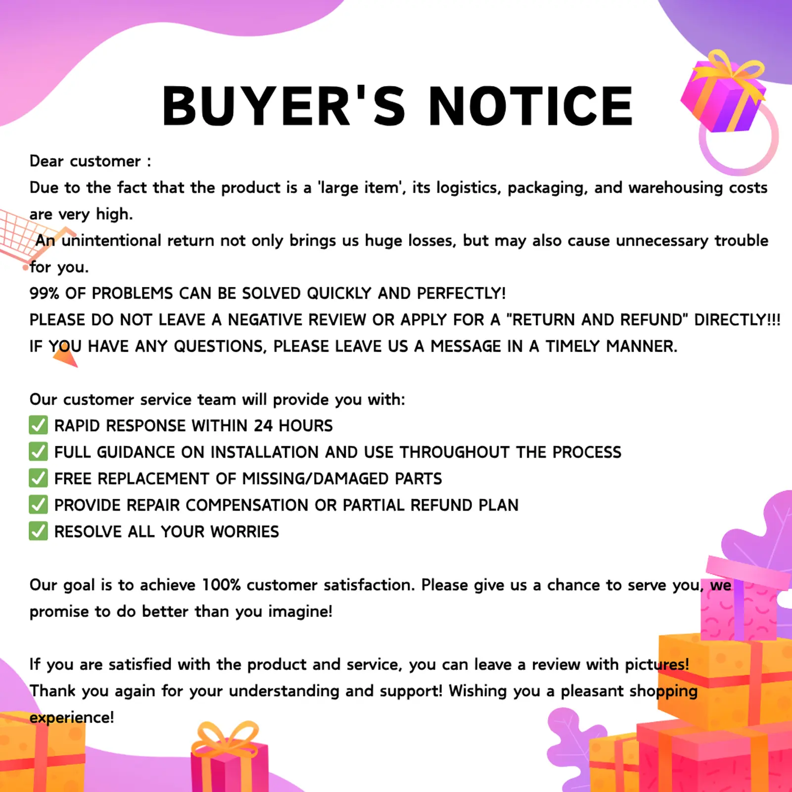 PLEASE DO NOT LEAVE A NEGATIVE REVIEW OR APPLY FOR A "RETURN AND REFUND" DIRECTLY!!!
