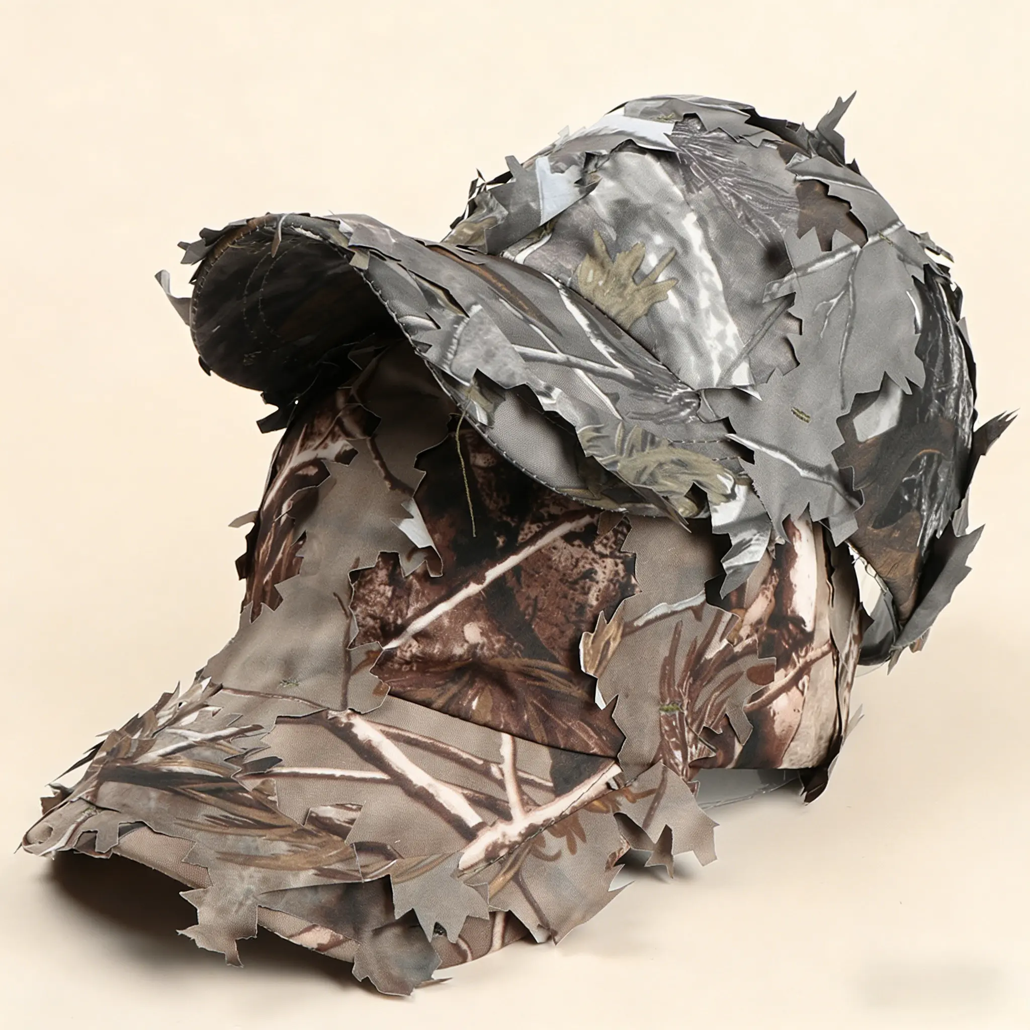 Leaf-Patterned Bionic Camouflage Baseball Cap — American-Style Outdoor Training & Jungle Concealment Hat with Curved Brim and Soft Crown