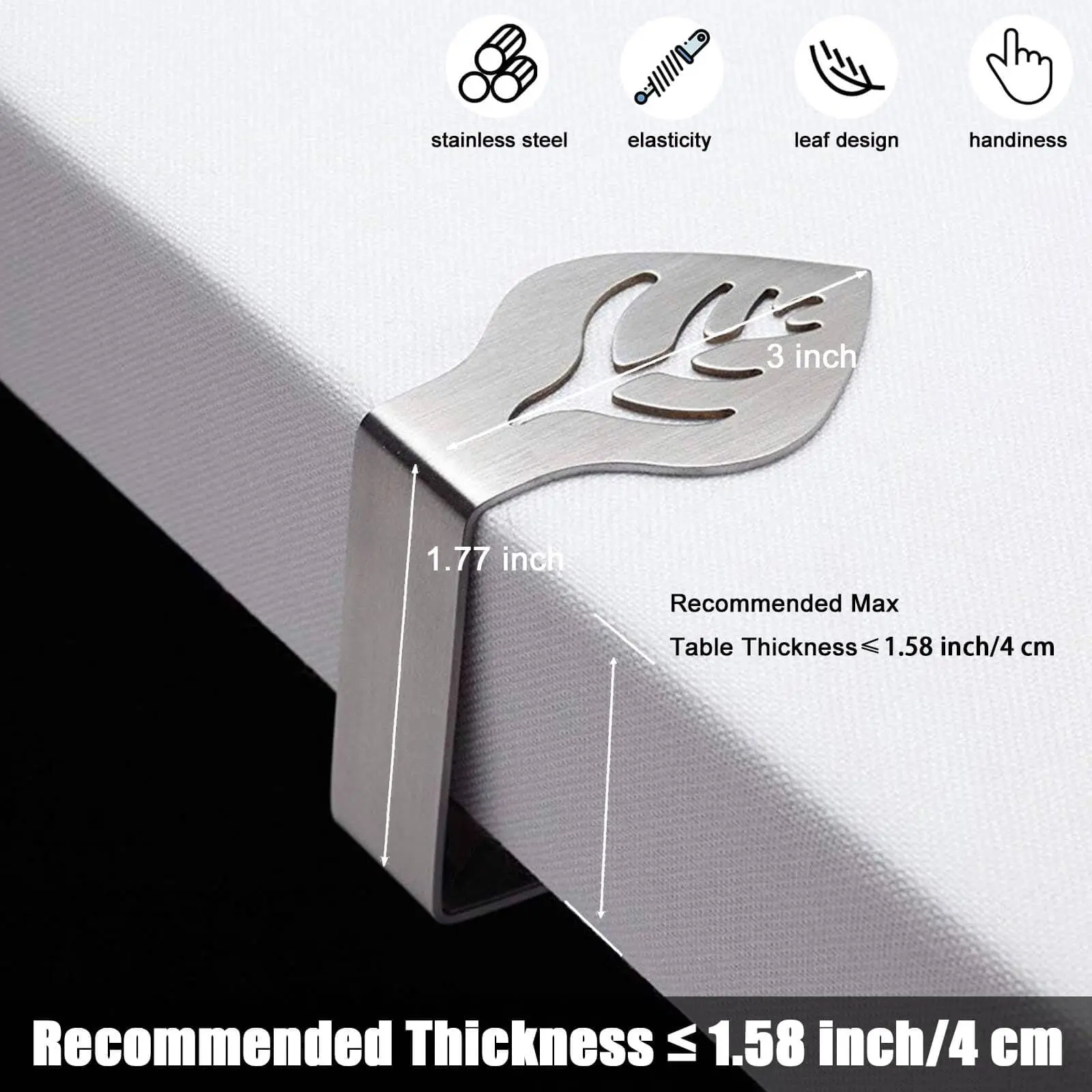 ·Versatile and adjustable: Our Large Table Cloth Holder Clips are designed to fit different table thicknesses, making them suitable for a wide range of table sizes(max thickness 1.58 inches). Their adjustable design ensures a snug fit, allowing you to easily adapt them to various tables, such as rectangle tables, patio round tables, camping tables, square tables, and outside portable dining tables.
